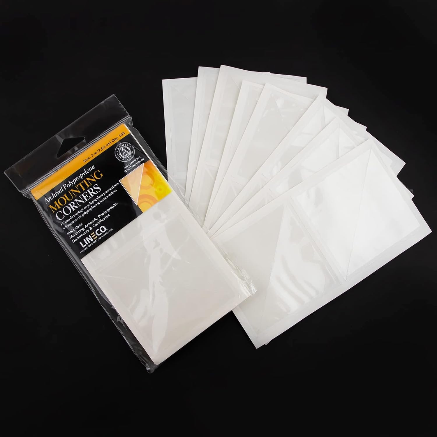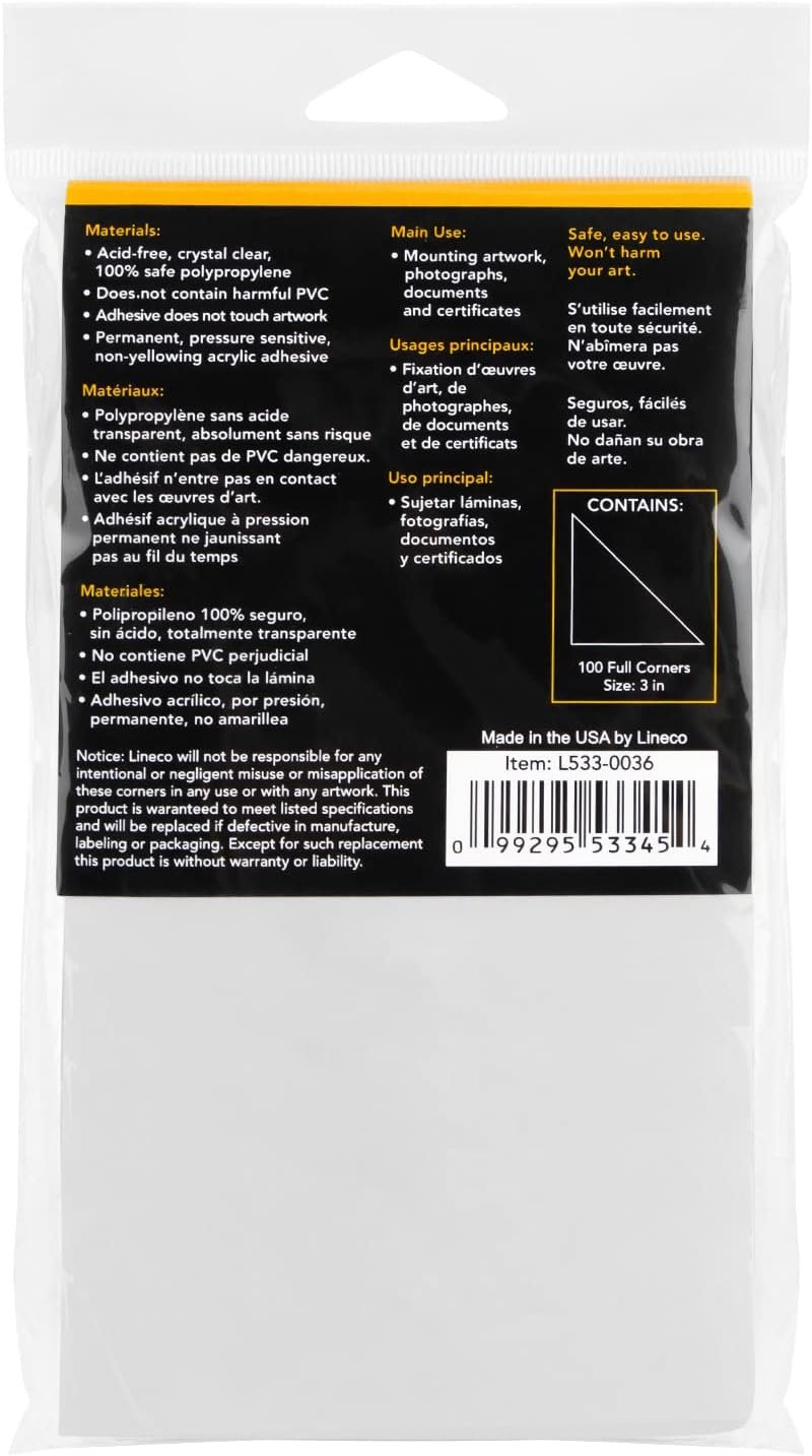(1) - Lineco Self-Adhesive Polypropylene Mounting Corners - 3" Clear (100/Pkg.)