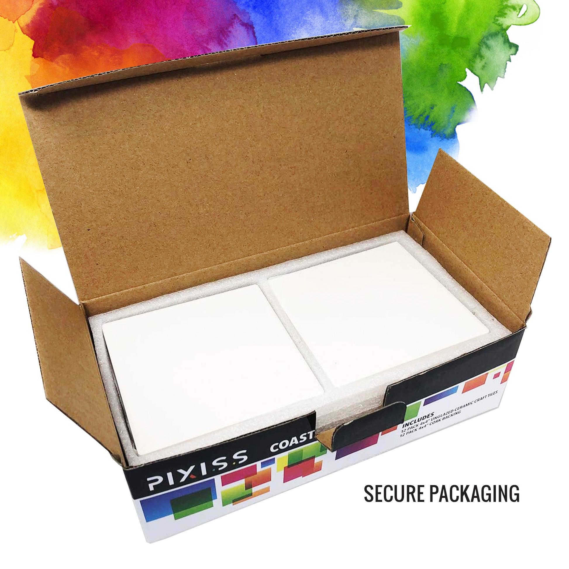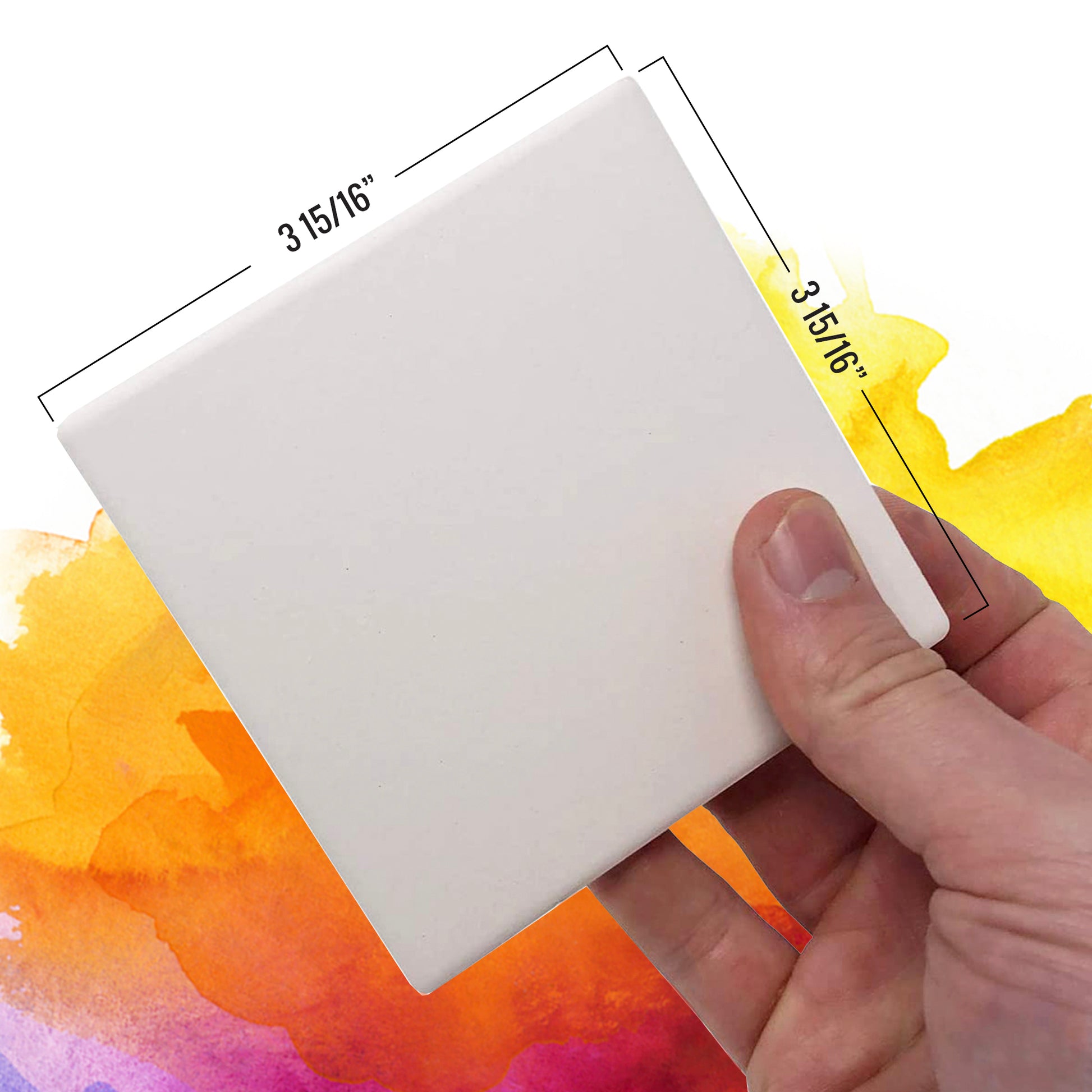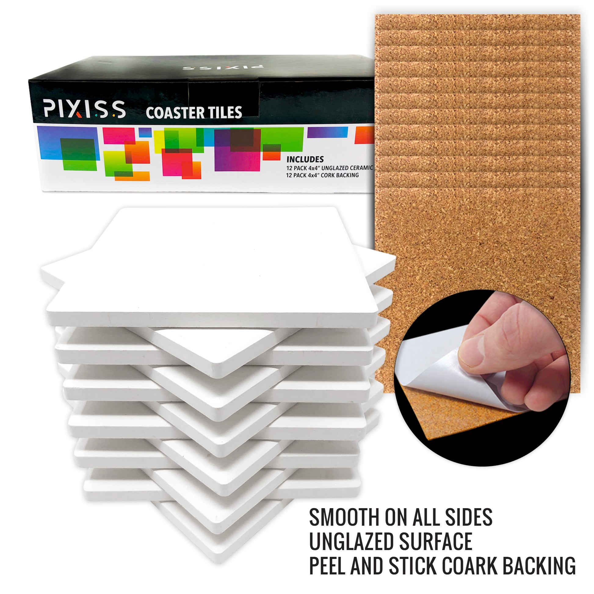 PIXISS Ceramic Tile/Coasters are perfect for creating coasters with alcohol inks, markers, acrylic paint, resin, and more! Our tiles are specifically designed for arts & crafts. Unlike traditional tiles found in home improvement stores, our tiles are smooth on all sides, which means no grooved bottoms or notched sides. PIXISS Tile/Coasters are non-glazed and may need sealing before applying alcohol inks. In addition, the set comes with perfectly sized peel and stick cork pads to protect the bottom side of the coaster.