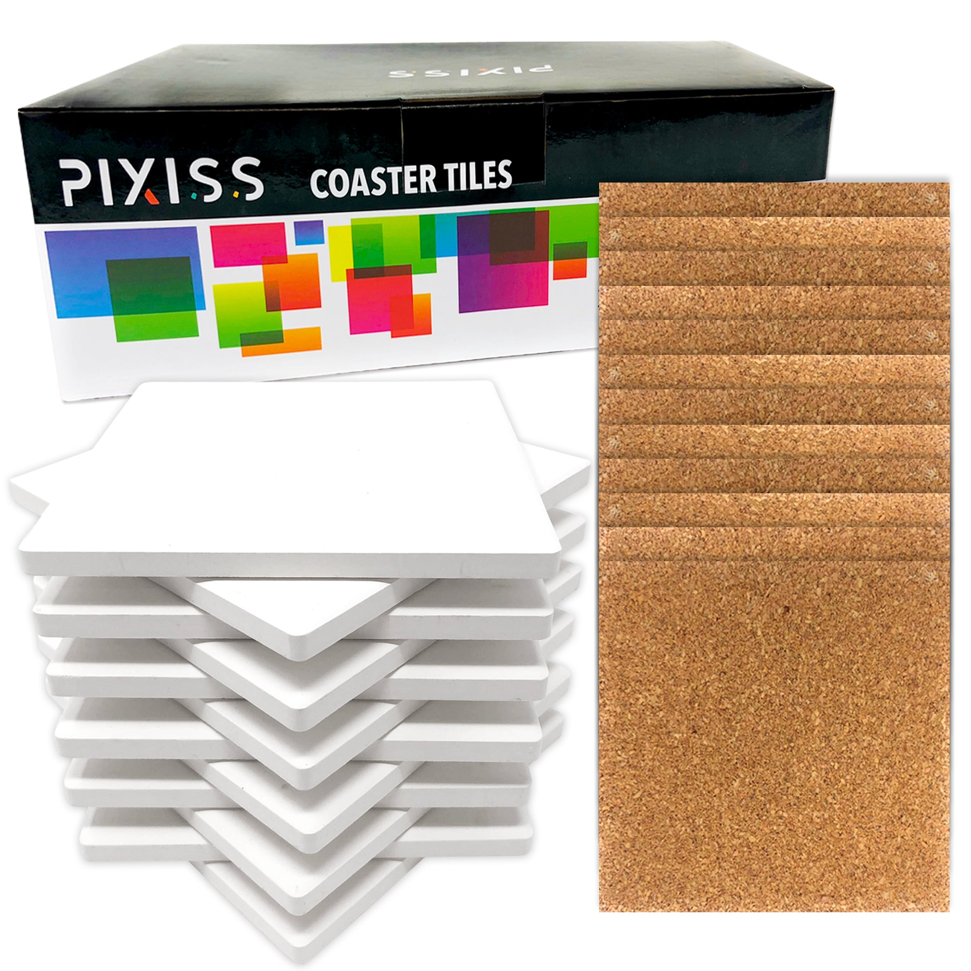 PIXISS Square Ceramic Coaster/Tiles with Cork Backing - 12PC