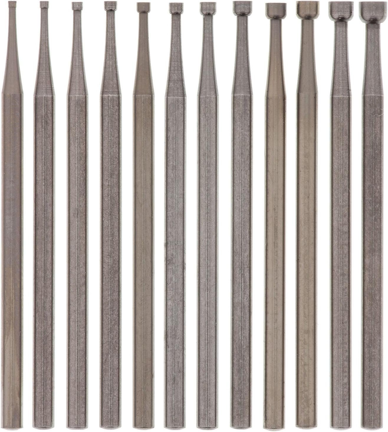 12 Euro Tool Cup Burs This is a set of 12 Euro Tool cup burs Made of the finest Swiss-milled Vanadium steel for long life and accuracy The hang-up reusable plastic pouch keeps cutting heads apart and takes up very little storage space All burs have 3/32" (2.5 mm) shanks for quick-change handpieces The burs measure approximately 0.9, 1, 1.2, 1.37, 1.5, 1.6, 1.75, 2, 2.3, 2.5, 2.7 and 3 mm