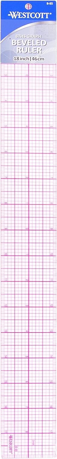 Westcott 18" 8ths Beveled Ruler is a lightweight, clear ruler which offers handy grid patterns in inches. There is also a "0 centering scale," so you can measure equally left and right from a centered starting point. Westcott drafting and drawing Tools are some of the finest products of their kind for students and professionals. Our commitment to meticulous quality and cutting edge innovation in measurement and art materials has earned an unparalleled reputation.