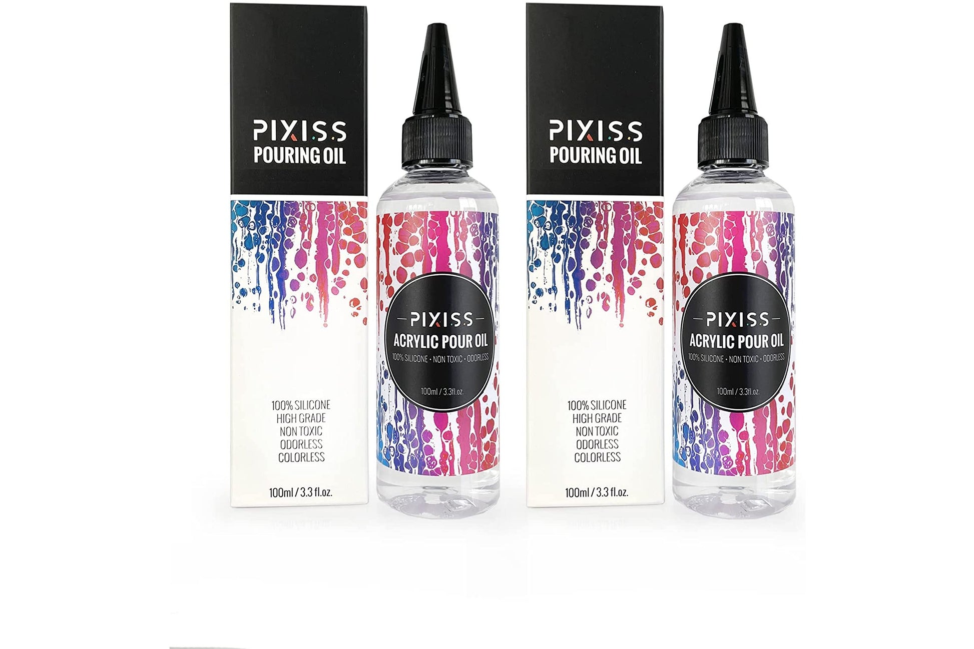 - 💦 100% PURE SILICONE POURING OIL - 2-Pack Pixiss silicone oil for painting in a 100ml/3.3oz bottle with applicator top. Pixiss silicone for acrylic paint pouring is made of 100% silicone for the perfect cells every time. Completely clear and odorless silicone oil / silicon oil.