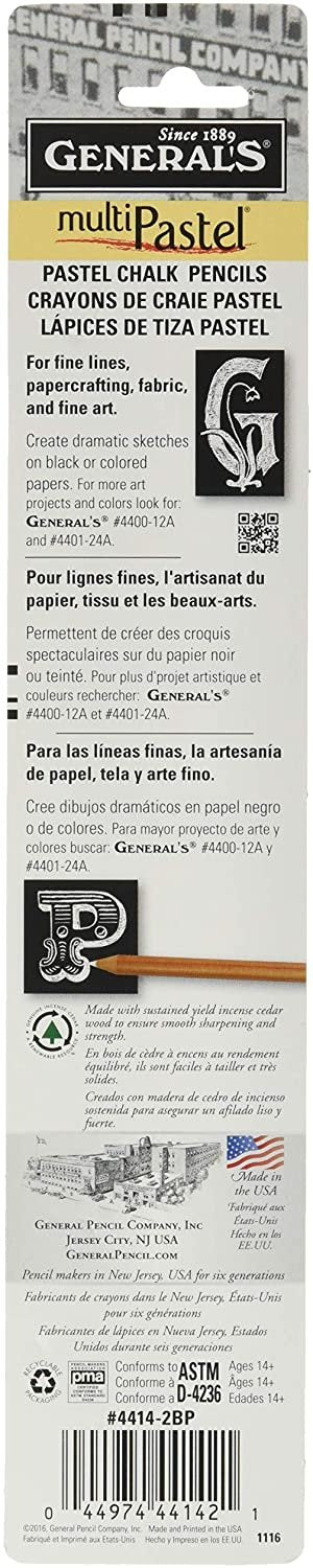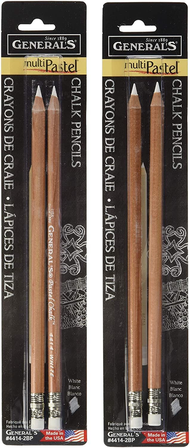 2-Pack - General Pencil Gen-4414-2BP 2 Pencils/Pack Multi-Pastel Chalk Pencils, White