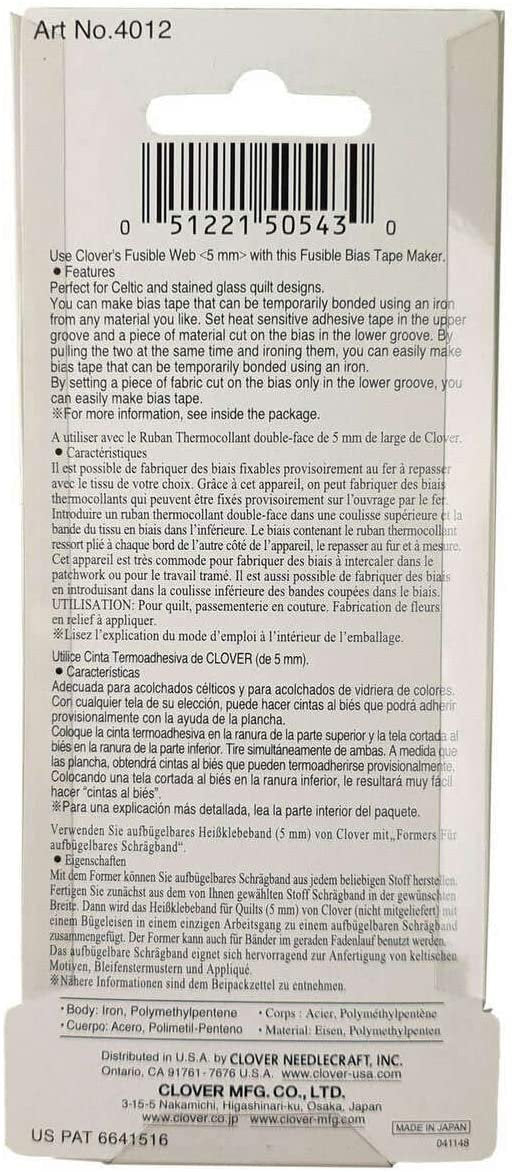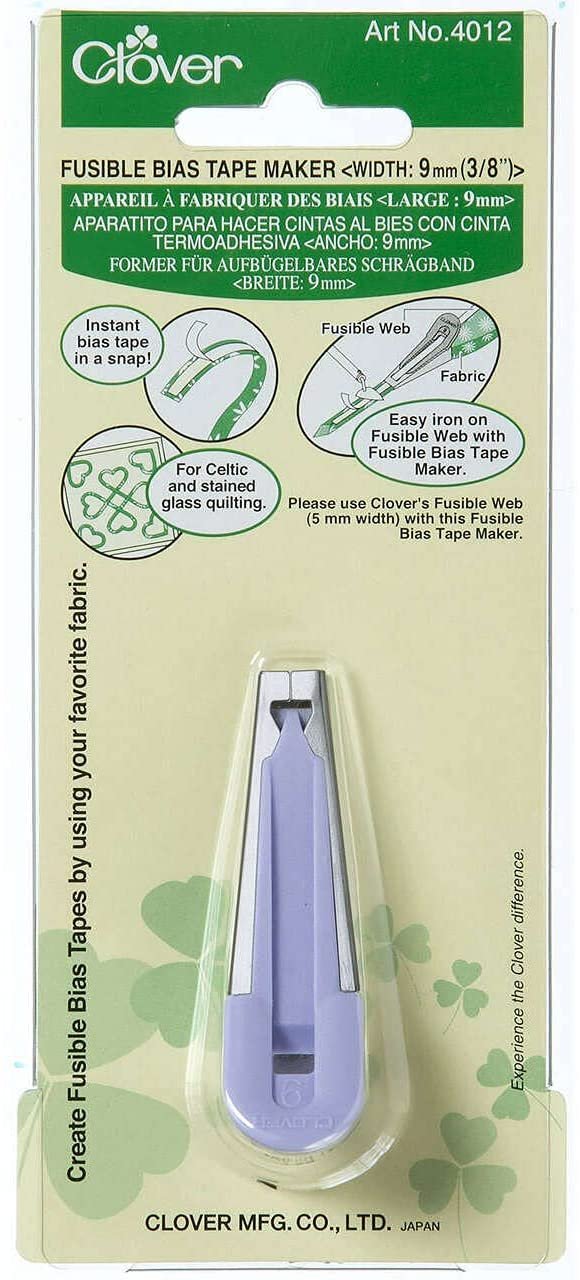 CLOVER-Fusible Bias Tape Maker. A precision tool that folds fabric into perfect halves automatically. Make any fabric into an accent, border or trim. It's fast, economical and perfectly coordinated. Fusible web is applied as fabric is pulled through the t