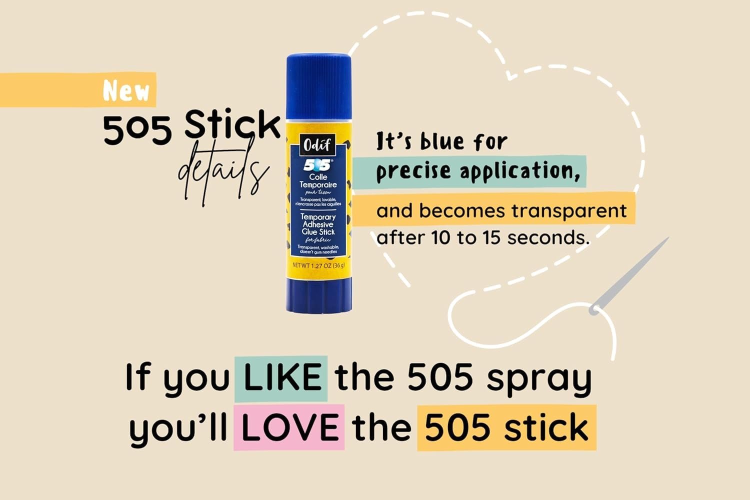 - Easy-to-Use Fabric Glue Sticks – The 505 glue sticks are ideal for fabric bonding, offering a mess-free, fast-drying alternative to traditional fabric glue.