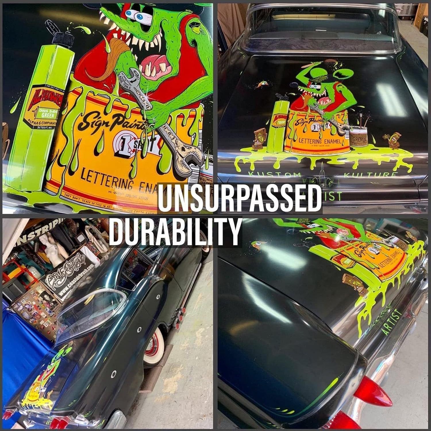 - High-Performance Enamel Paint - Comprehensive Solution for Art and Signage: Renowned for its high performance, glossy finish, and endurance, it excels in applications such as pinstriping, sign painting, and fine art projects. A staple in the artist and automotive community, this enamel paint not only ensures vibrant, popping colors but also guarantees artwork longevity with UV and acid rain resistance.