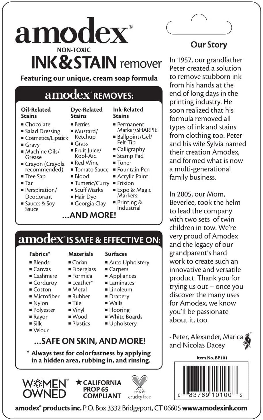 - MADE IN THE USA by Amodex, a Woman-Owned family business since the 1950s.