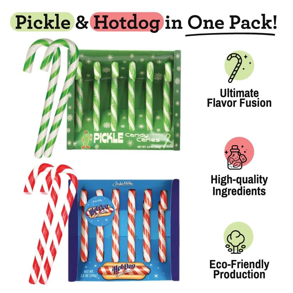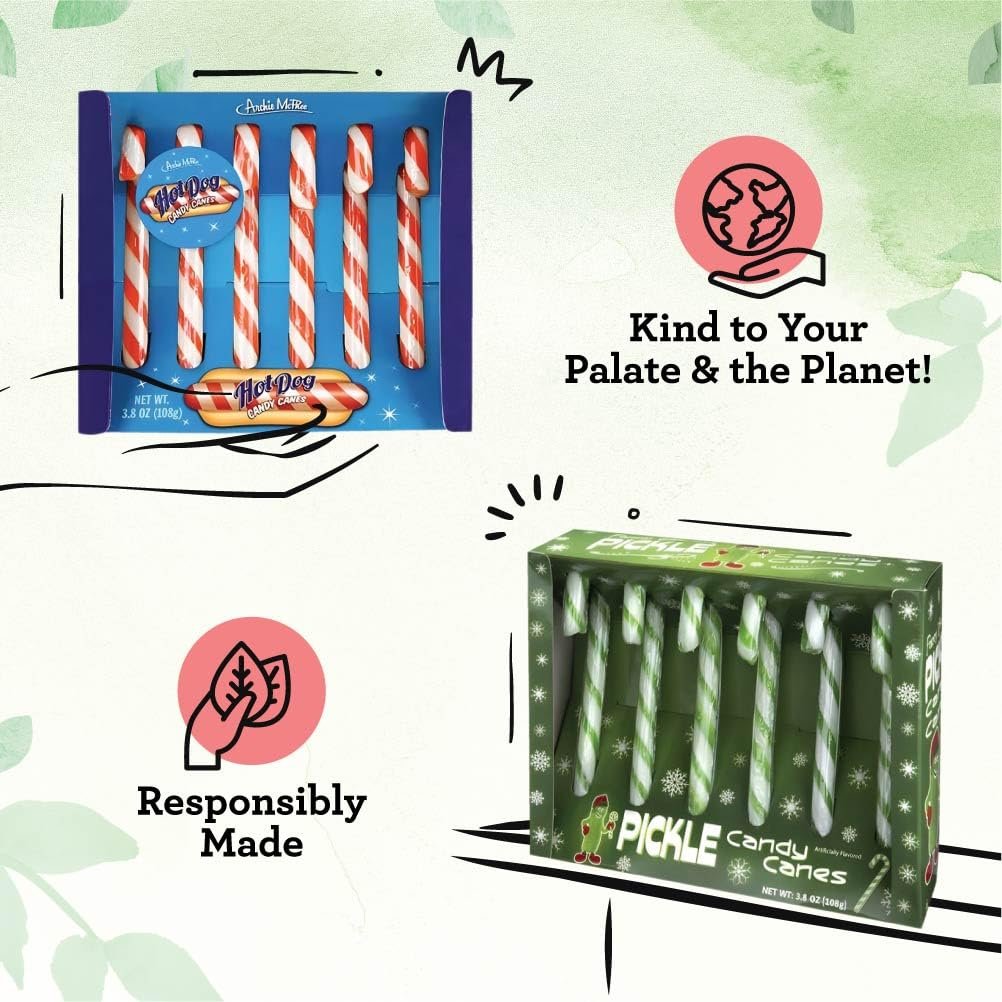 Archie McPhee Candy Canes Pickle and Hot Dog Flavors - Pickle Flavored Candy Canes and Hot Dog Flavored Candy Canes - Weird Candy Cane Bundle