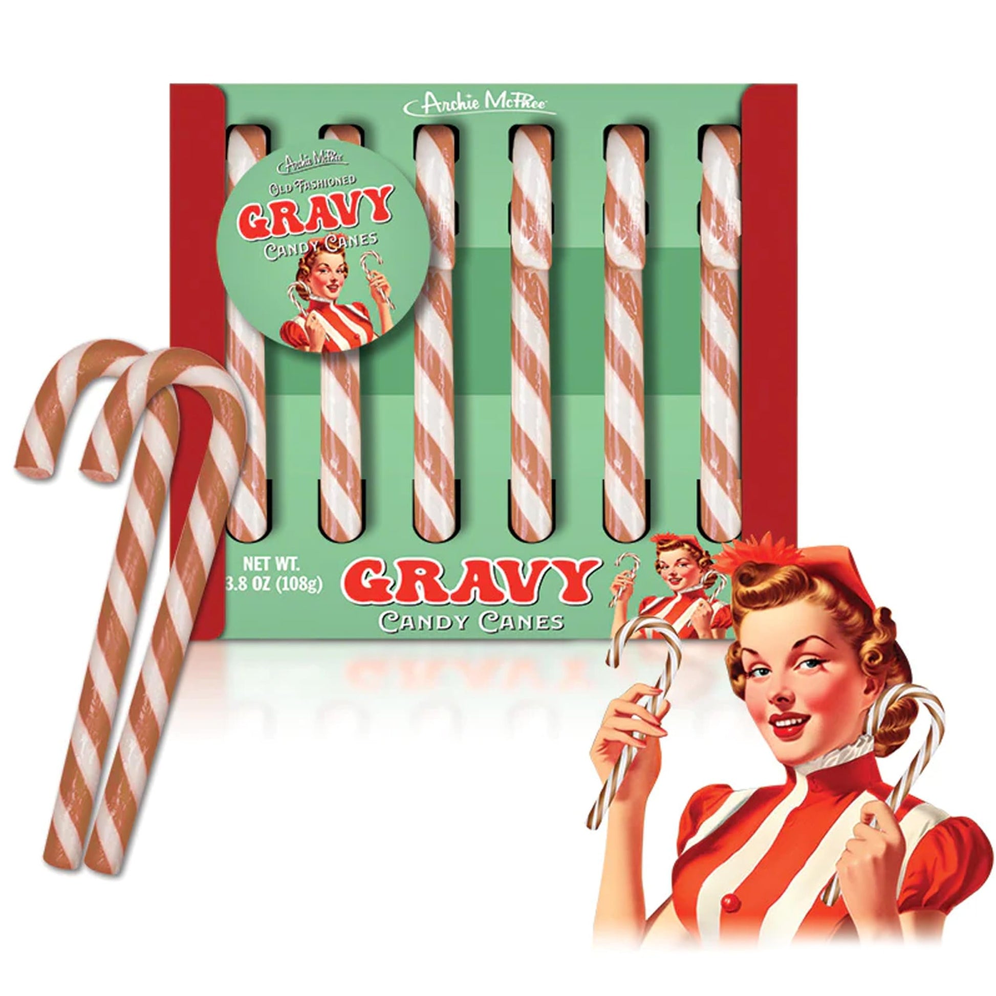 Archie McPheeGravy Magic Candy Canes | Gift Box of 6 Funny Gravy Flavored Festive Delight Candy Canes