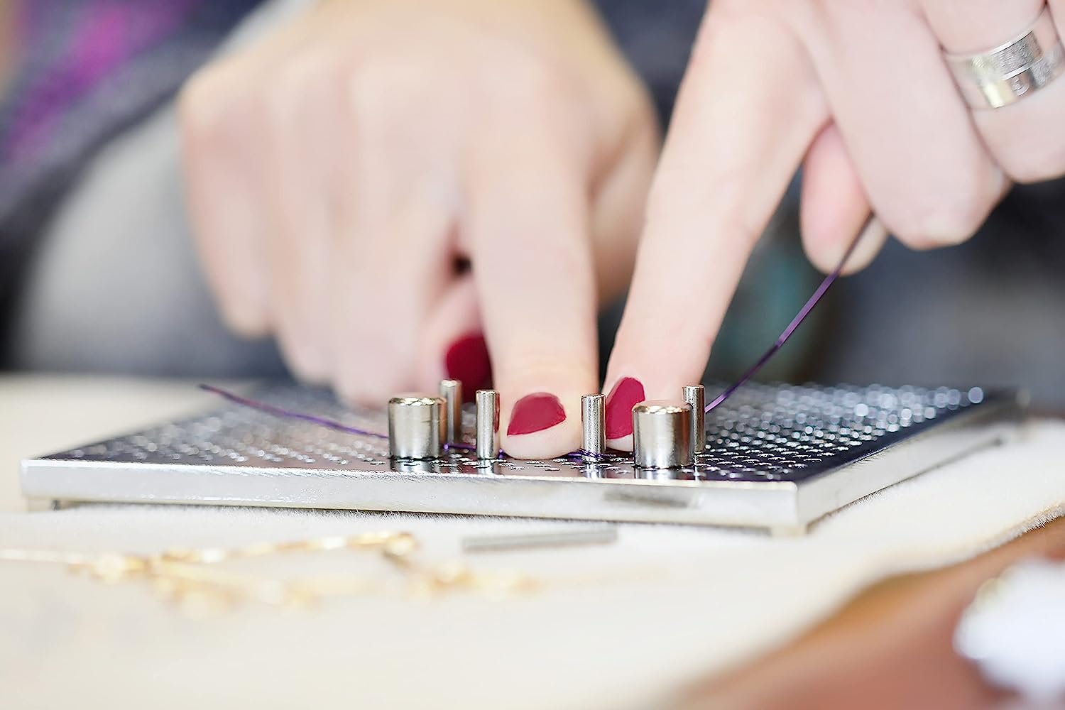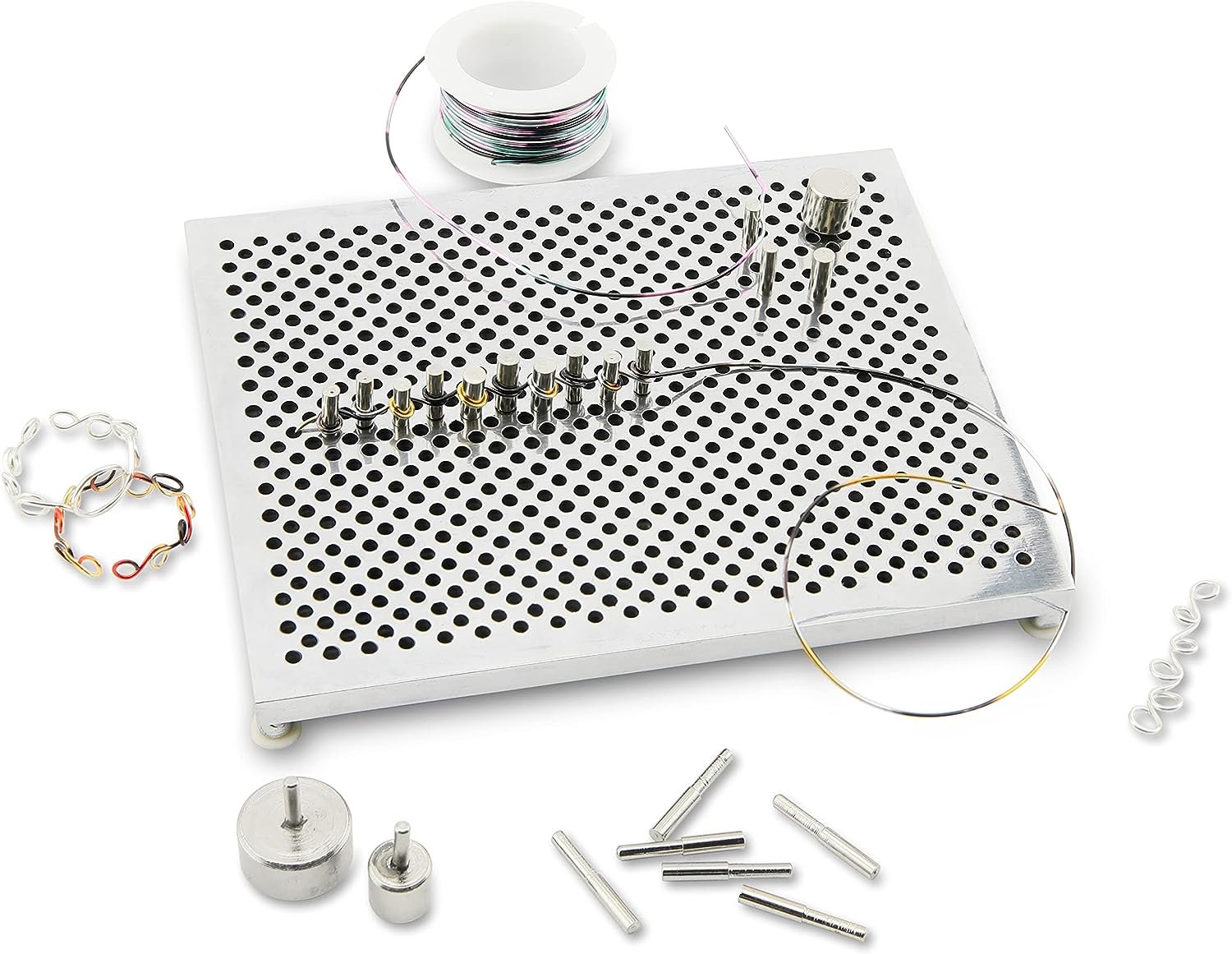 The Deluxe Thing-a-ma-Jig is ideal for forming elaborate loops for jewelry components, including necklace links, ornaments, pins - you're limited only by your imagination. Adjust the pegs on the jig base to create patterns of your own or follow the pattern-sheet included with the jig. Replicate designs consistently time and time again. The Deluxe Thing-a-ma-Jig has a sturdy 4-Inch by 5-Inch (10 by 13 centimeter) aluminum base with aluminum pegs, this sturdy aluminum construction reduces deformities from prolonged use. The Deluxe Thing-a-ma-Jig is suitable for use with all gauges of Artistic Wire. Wire not included.