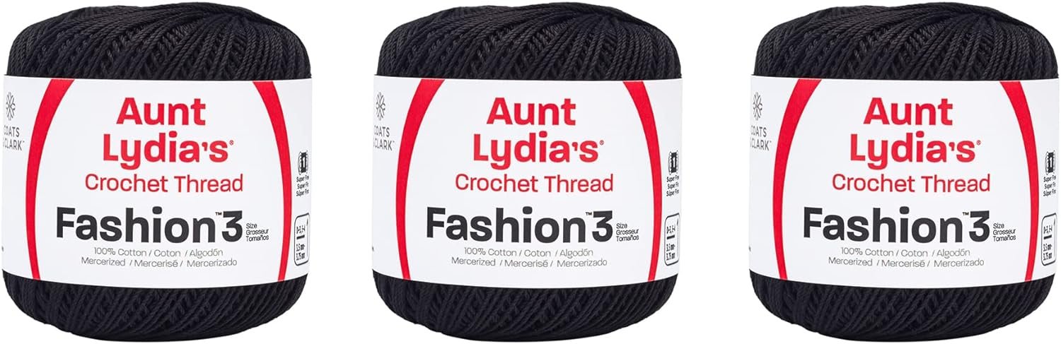 Aunt Lydia Fashion Black Crochet - 3 Pack of 150y/137m - Cotton - Gauge 3 - Crochet