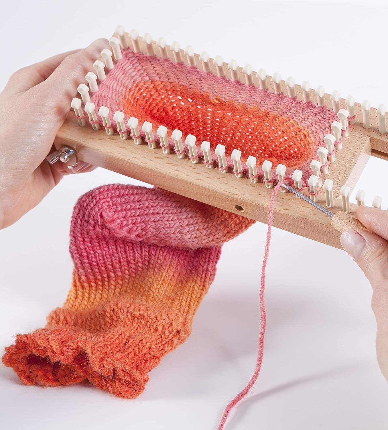 - Adjustable 100% hardwoood sock knitting loom, completely asjustable for baby to men's large socks.
