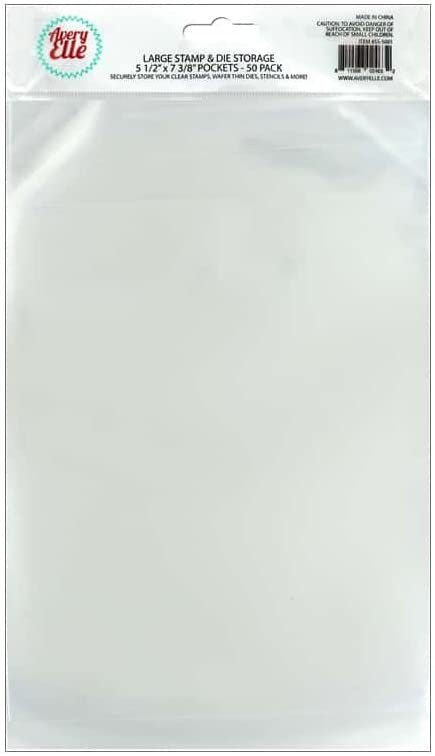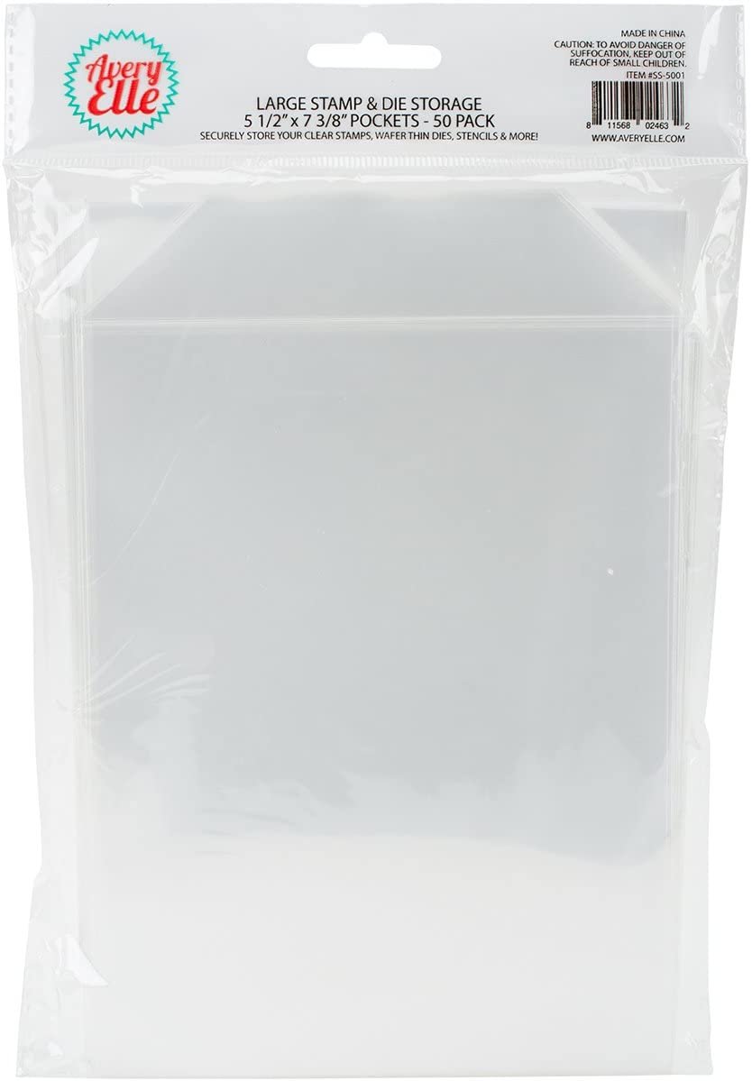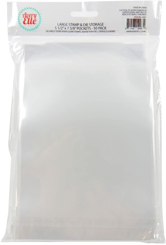 Avery Elle- Stamp & Die Storage Pockets: Large. These are perfect for storing all of your stamps and dies. This package contains fifty 8-1/2x5-1/2 inch clear stamp and die storage pockets. Imported.