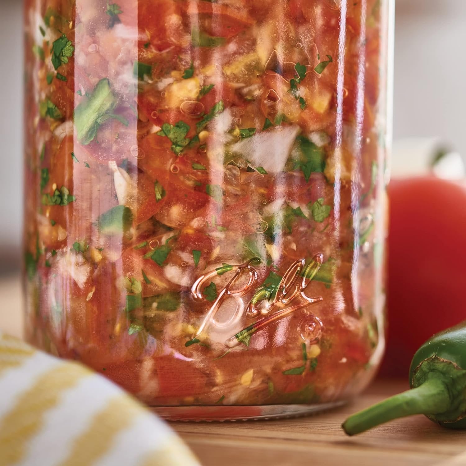 These classic Ball Regular Mouth Quart Mason Jars are the ideal way to store your favorite jam, jelly, sauce, syrup, and salsa recipes to ensure your creations remain fresh and delicious. These canning-safe jars go beyond preserving— their timeless design makes them perfect for gifting, creative decor, crafting, and drinkware. These BPA-free glass jars seal for up to 18 months; set includes lids and bands.