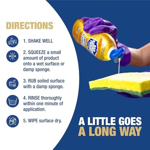 - Clean bathtub surrounds, shower fixtures, use as a soap scum remover on shower doors, remove stubborn rust stains, hard water stains, and stains from porcelain tile, stainless steel, your non-stone countertop, and other surfaces. This thick liquid cleaner clings to vertical surfaces to penetrate grime, which means less scrubbing for you. Just spread the cleaner across the surface with a damp sponge, and rinse within one minute of application. Repeat if necessary to remove deep stains.