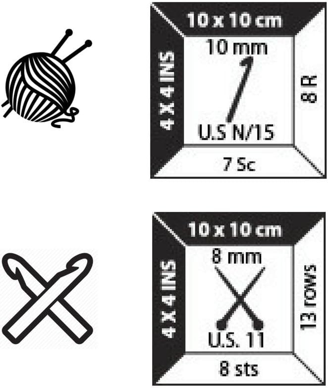 - Crochet Gauge: 7 sc and 8 rows with a 8 mm (U.S. L/11) crochet hook