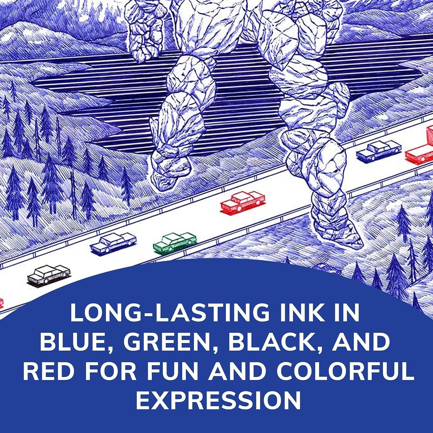 - These BIC pens feature four colors in one convenient pen: black, blue, red and green