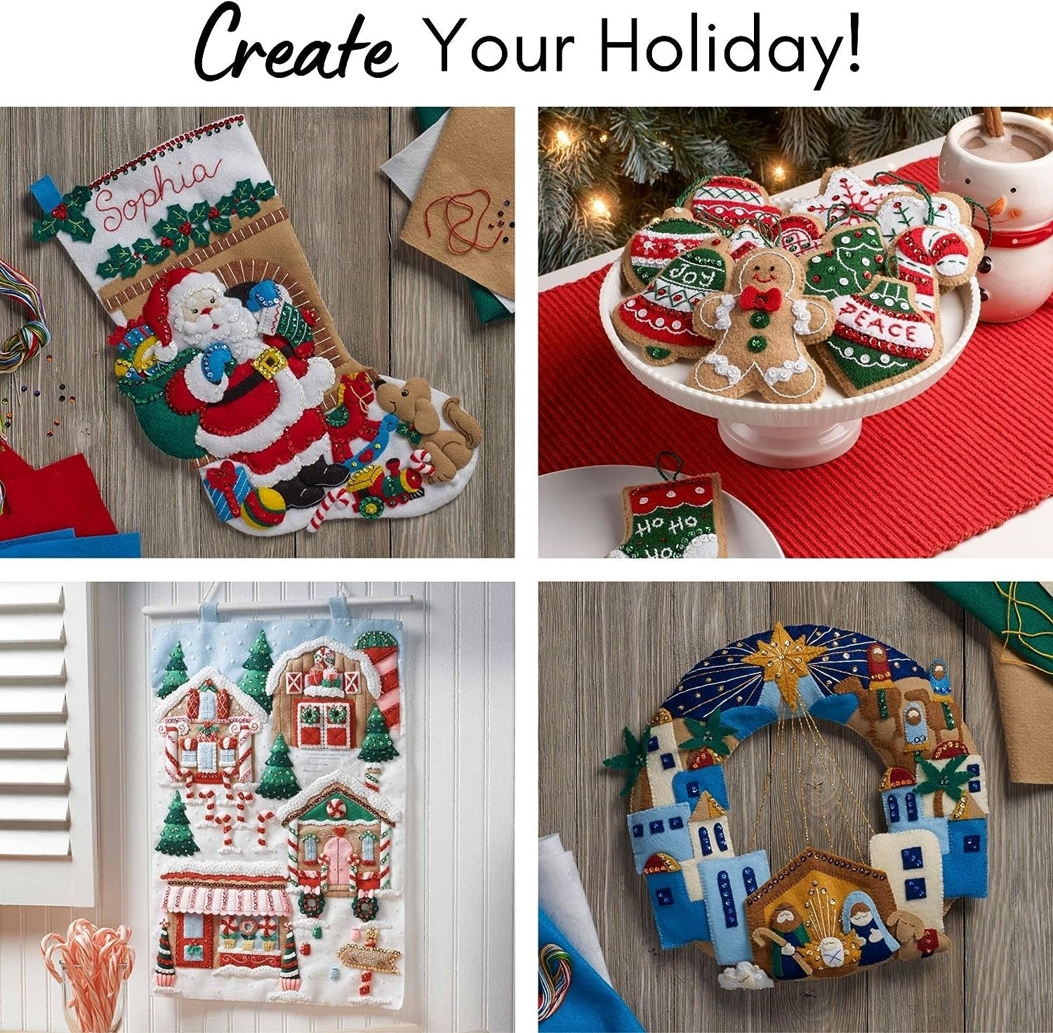 - BEAUTIFUL WHIMSICAL STOCKING - This unique 18" felt applique stocking is the perfect embroidery kit for your holiday décor. Fill this stocking with your favorite stocking stuffers to make the holidays special