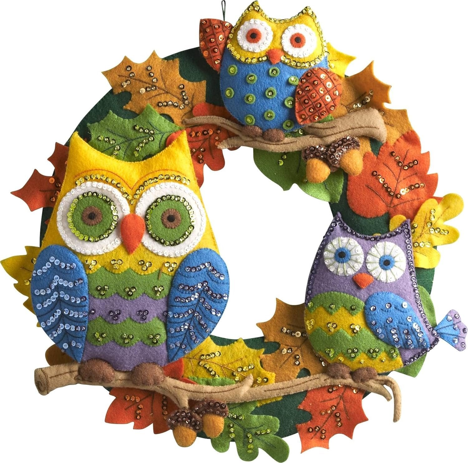 Bucilla Felt Applique Wall Hanging Kit, 17 by 17-Inch, Owl Wreath