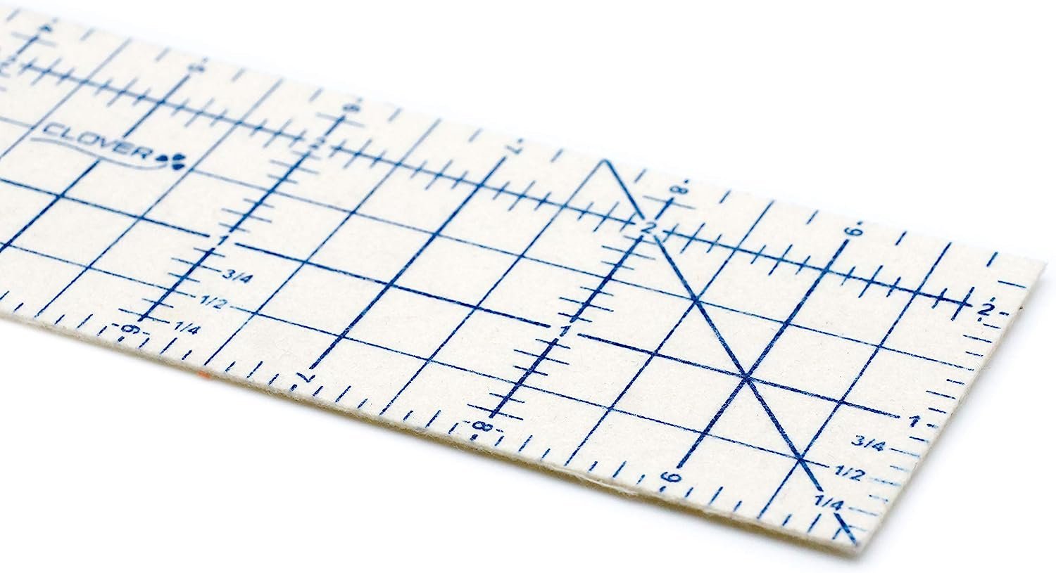 This Clover #7811 Hot Ruler is perfect to measure, mark, fold, press deep hems, press long hems and miter corners. It is heat resistant and you can press directly on the ruler. It can be used with dry or steam irons. The unique non-slip surface holds fabric in place for precise results. It is the latest addition to the Press Perfect line by Joan Hawley. Notes from Joan "Perfect size ruler for large tasks at the pressing station" and "Keep this handy ruler by the iron to measure , mark, and press".