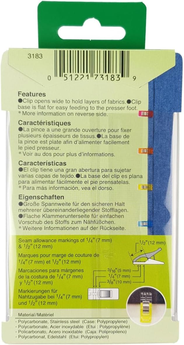 - Mini Wonder Clips open wide to hold layers of fabrics. A great alternative to pins especially when working with quilts handbags and heavyweight fabrics. The Wonder Clip base is flat for easy feeding to the presser foot. Each clip includes seam allowance markings of .25'' and .5". Pack includes 50 mini wonder clips total in five colors which include: red purple blue yellow and green.