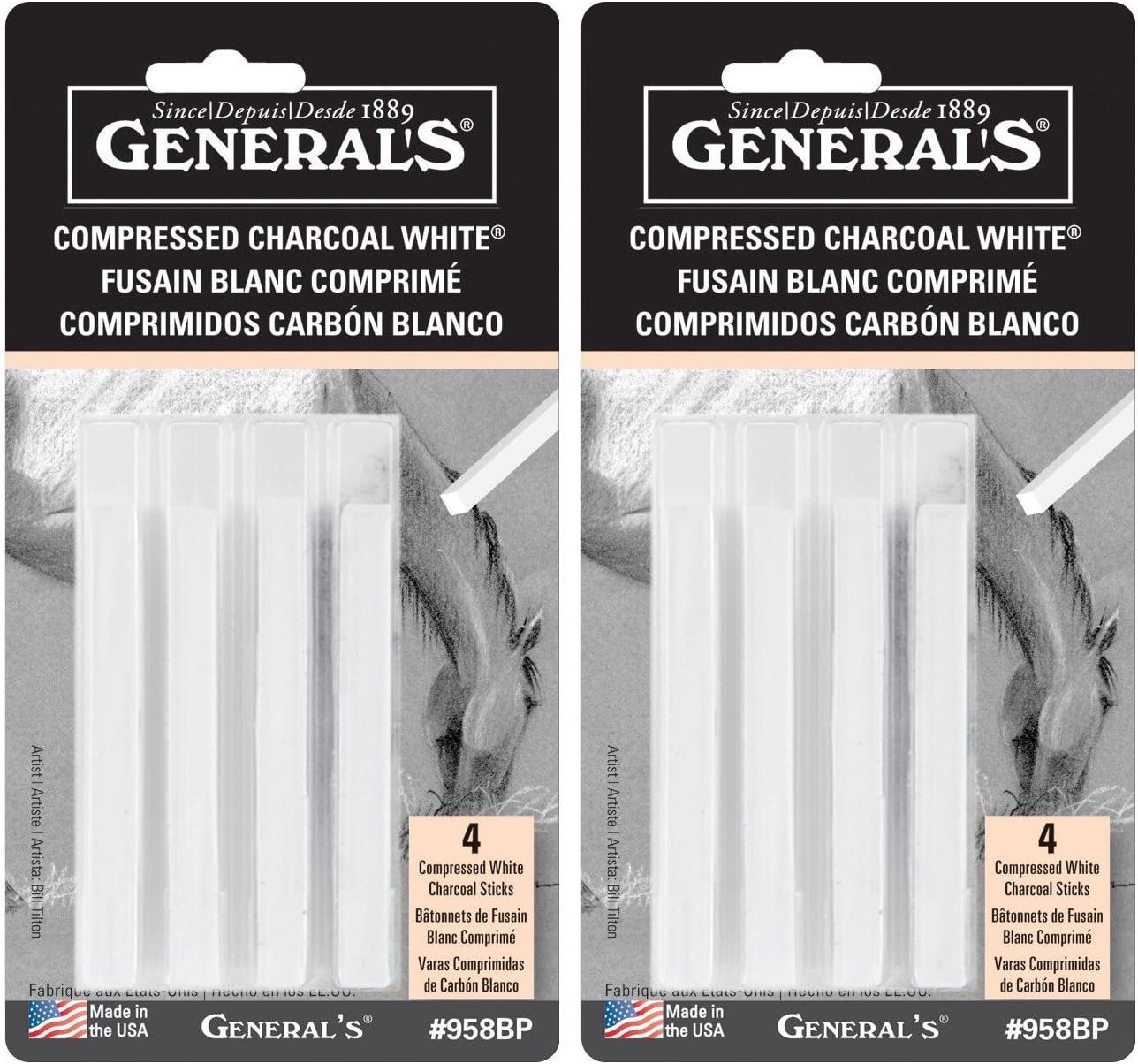 White Compressed Charcoal Sticks, 4 per package. This item is for 2 packages (8 total sticks).