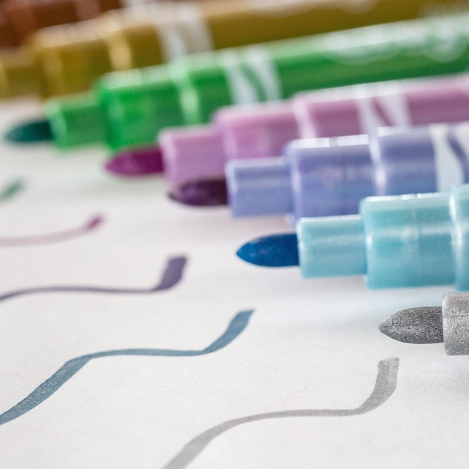 - CRAYOLA COLORS: 8 brilliant markers in metallic colors to choose from