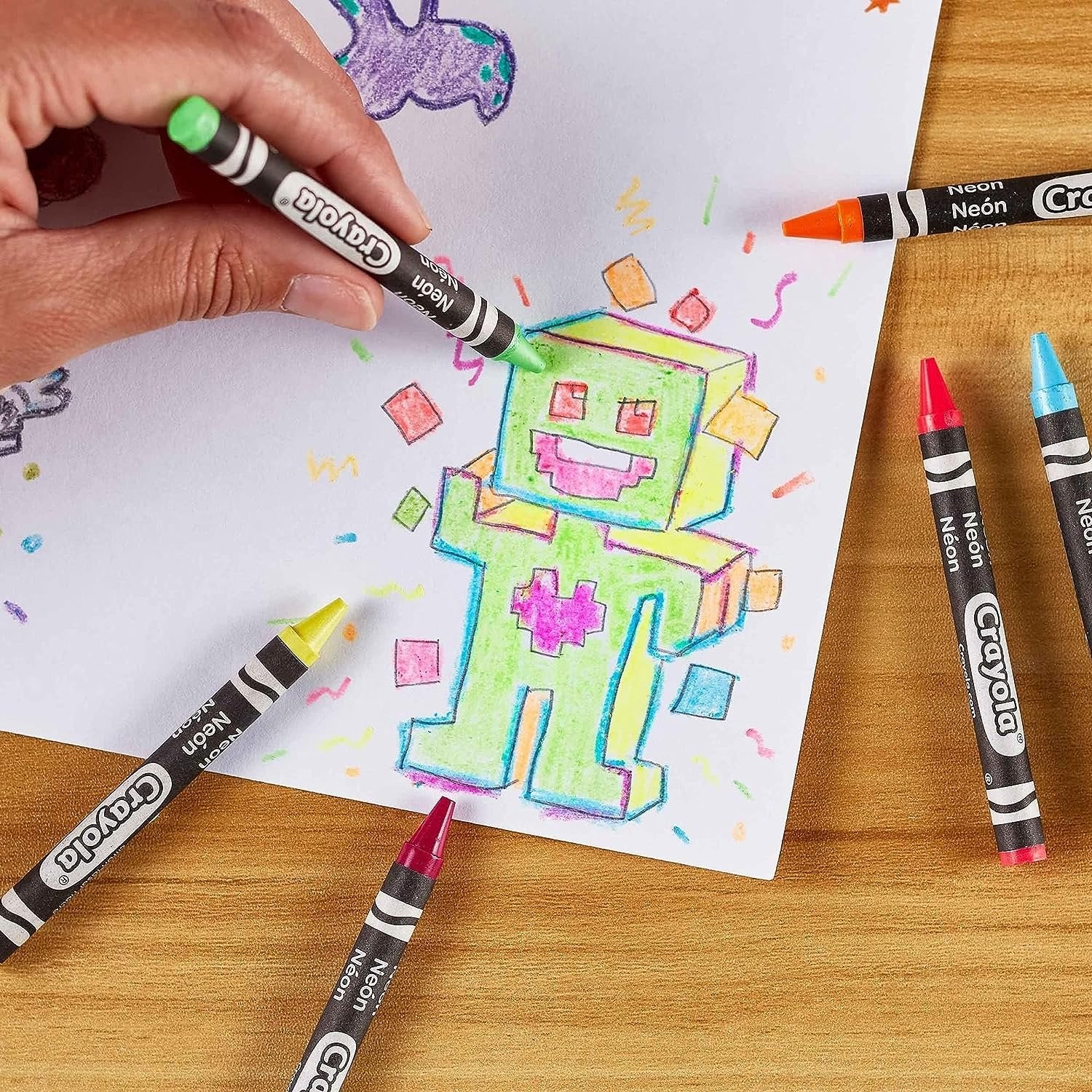 - NEON CRAYONS: Features 24 Crayola crayons in bright neon colors.