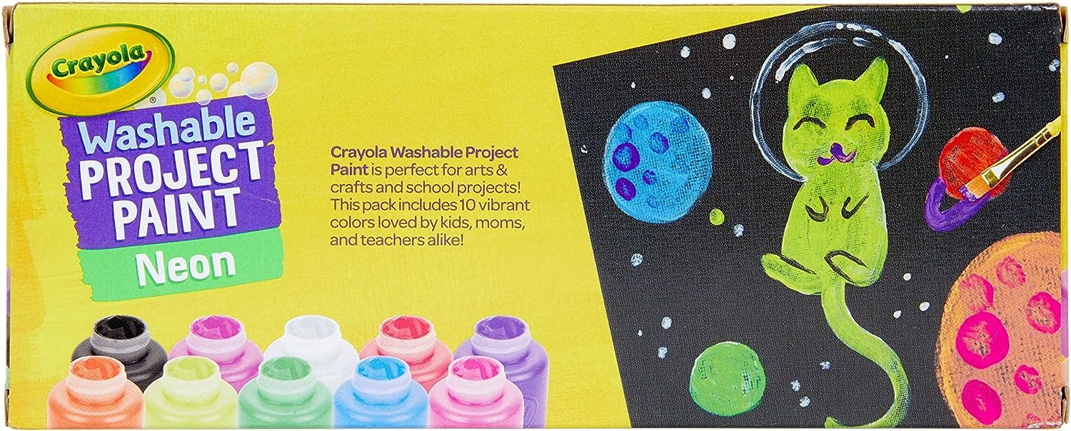Crayola Washable Kids Project Paint - Neon (2oz), Arts & Crafts Supplies for Kids, Preschool & Kindergarten, Gifts, Ages 3+