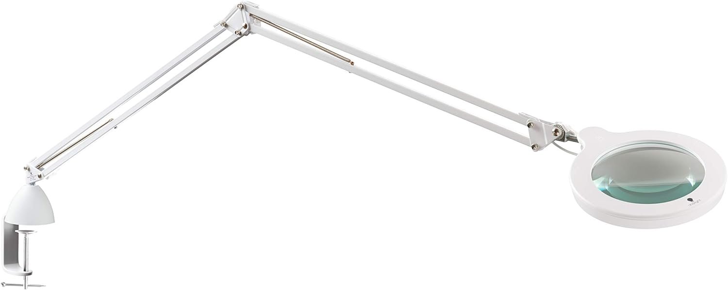 The Mag lamp s is a modern and attractive slim design, ideal to see and work on projects where detail is key. It has 2 brightness levels and a 5 inch diameter, 3 diopter (1.75x) glass lens. The adjustable spring arm will allow you to position the Magnifier exactly where you need it.