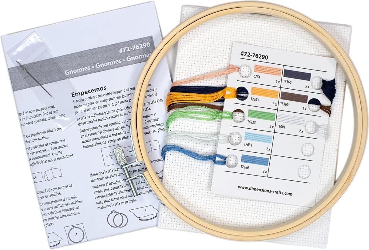 Dimensions 72-76290 Gnomies Embroidery Cross Stitch Kit, 6" D, 14 Count White Aida, Multicolor