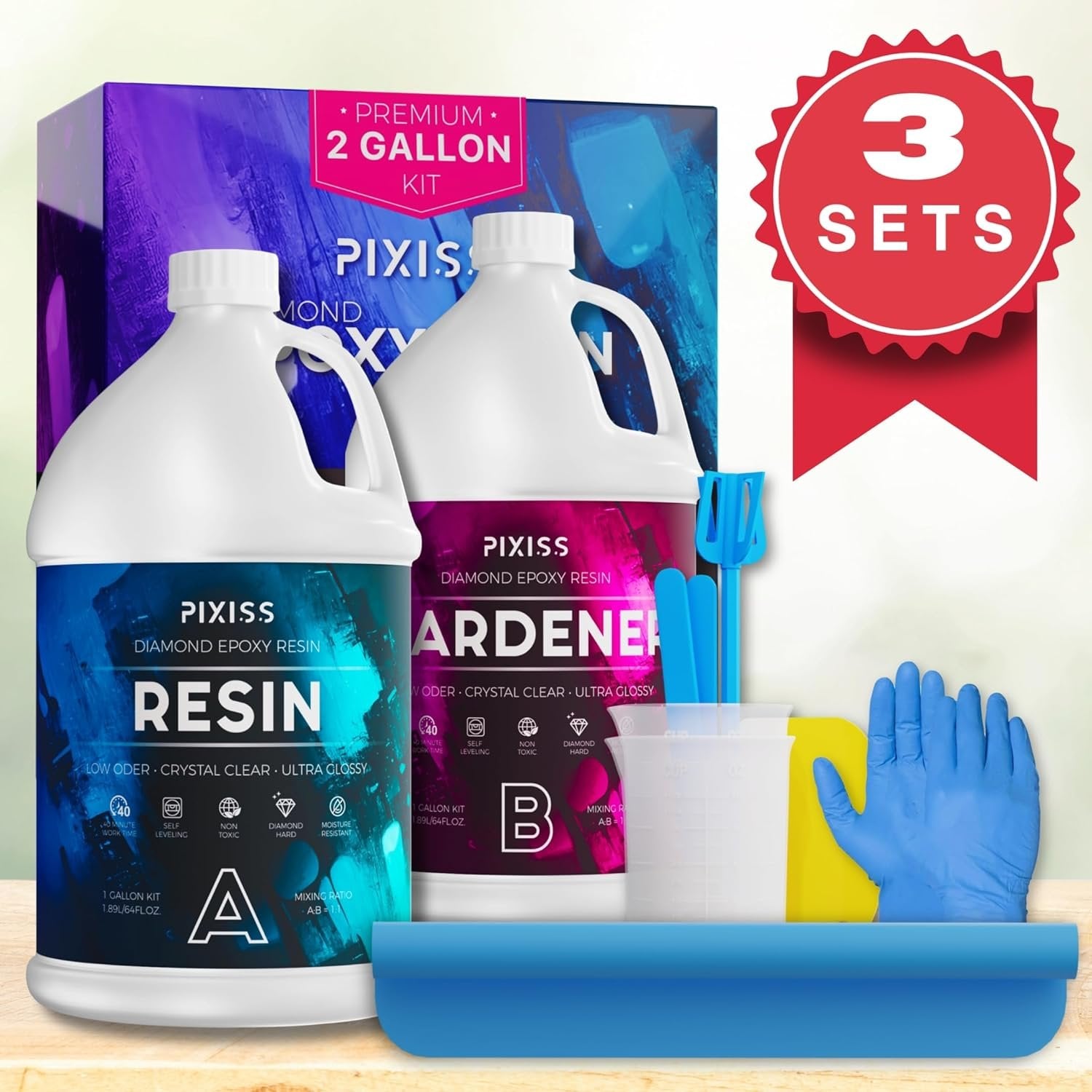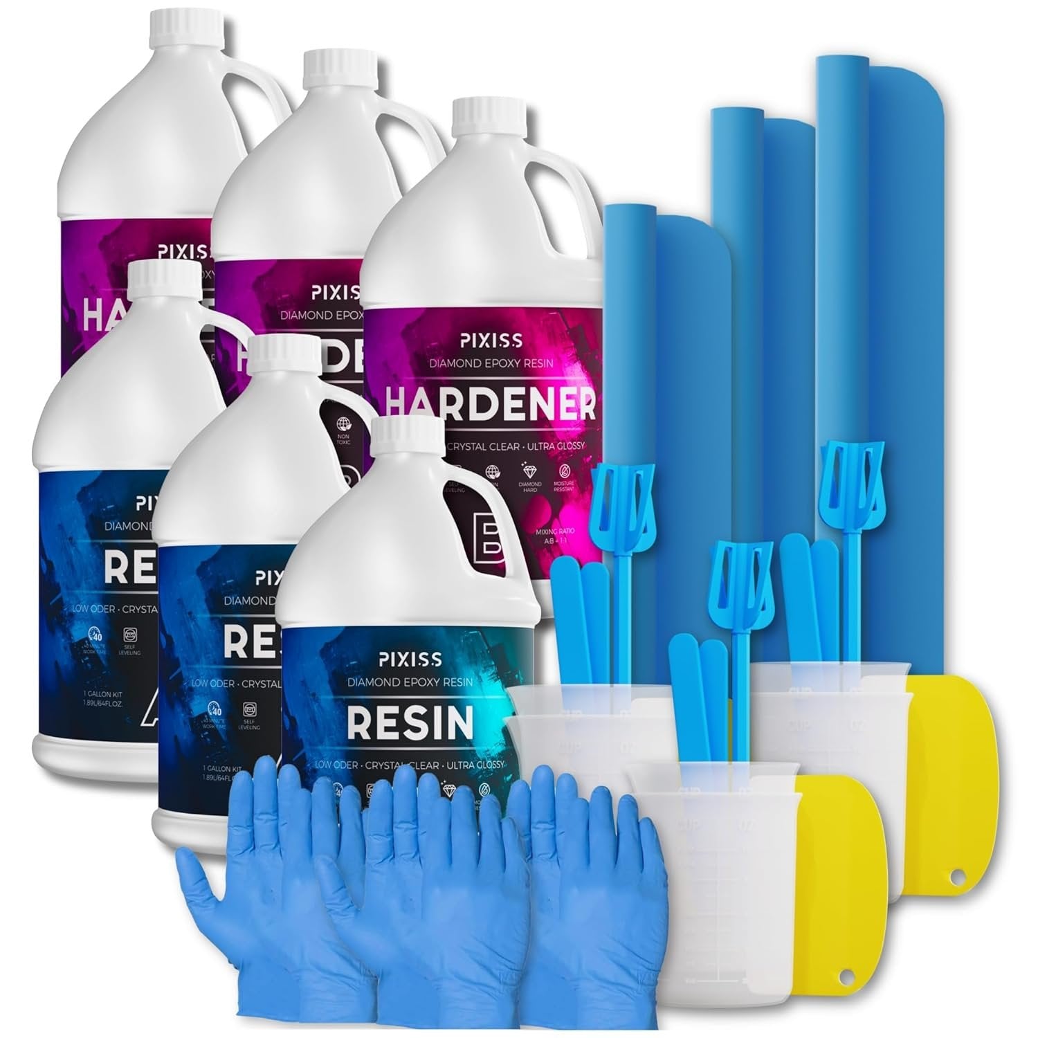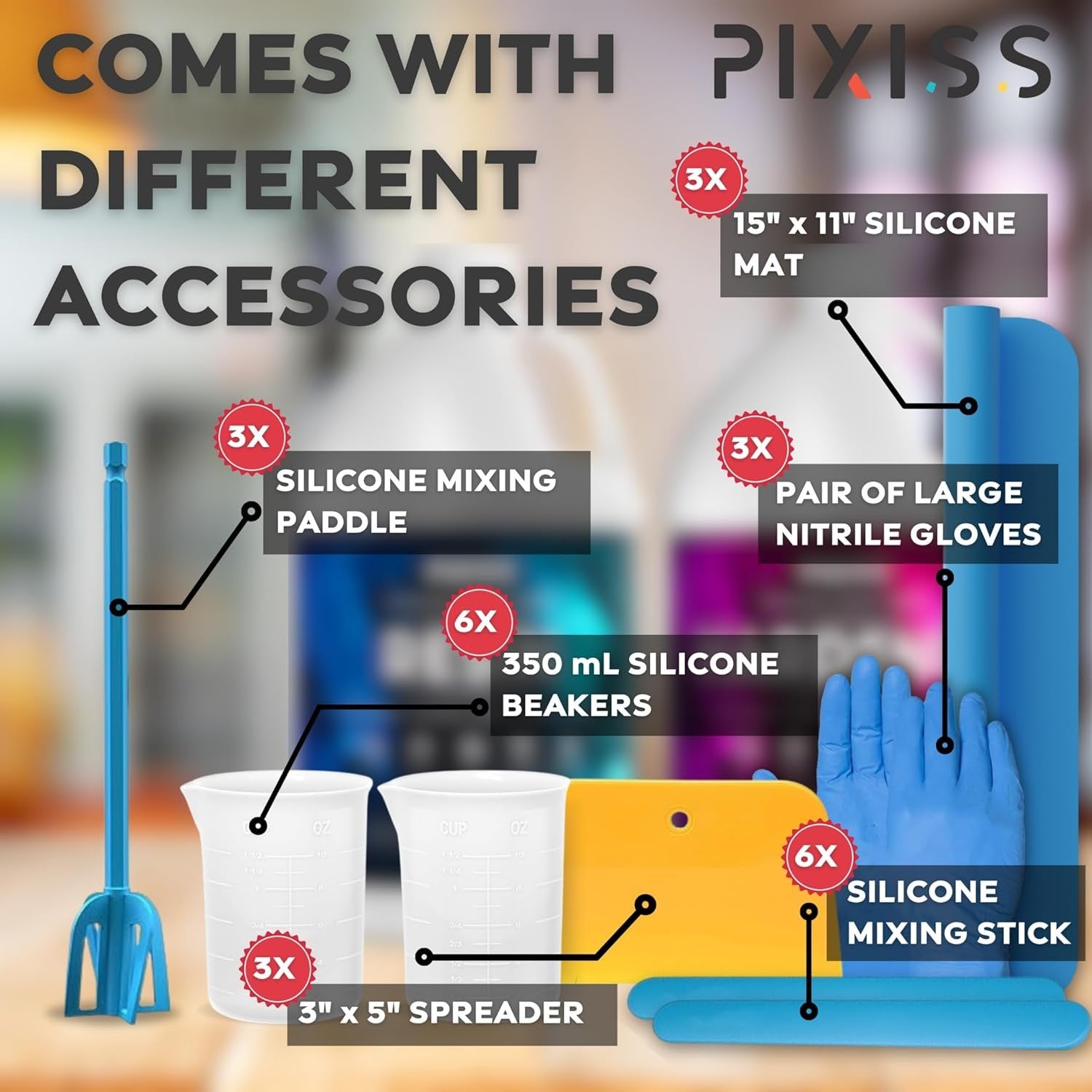 Epoxy Resin Mold Kit (6 Gallon) and Resin Art Supplies (3-Pack) - 1:1 Easy Mix Crystal Clear Epoxy Resin Kit for Beginners by Pixiss - Resin Starter Kit for Casting Resin Art and Epoxy Resin Molds