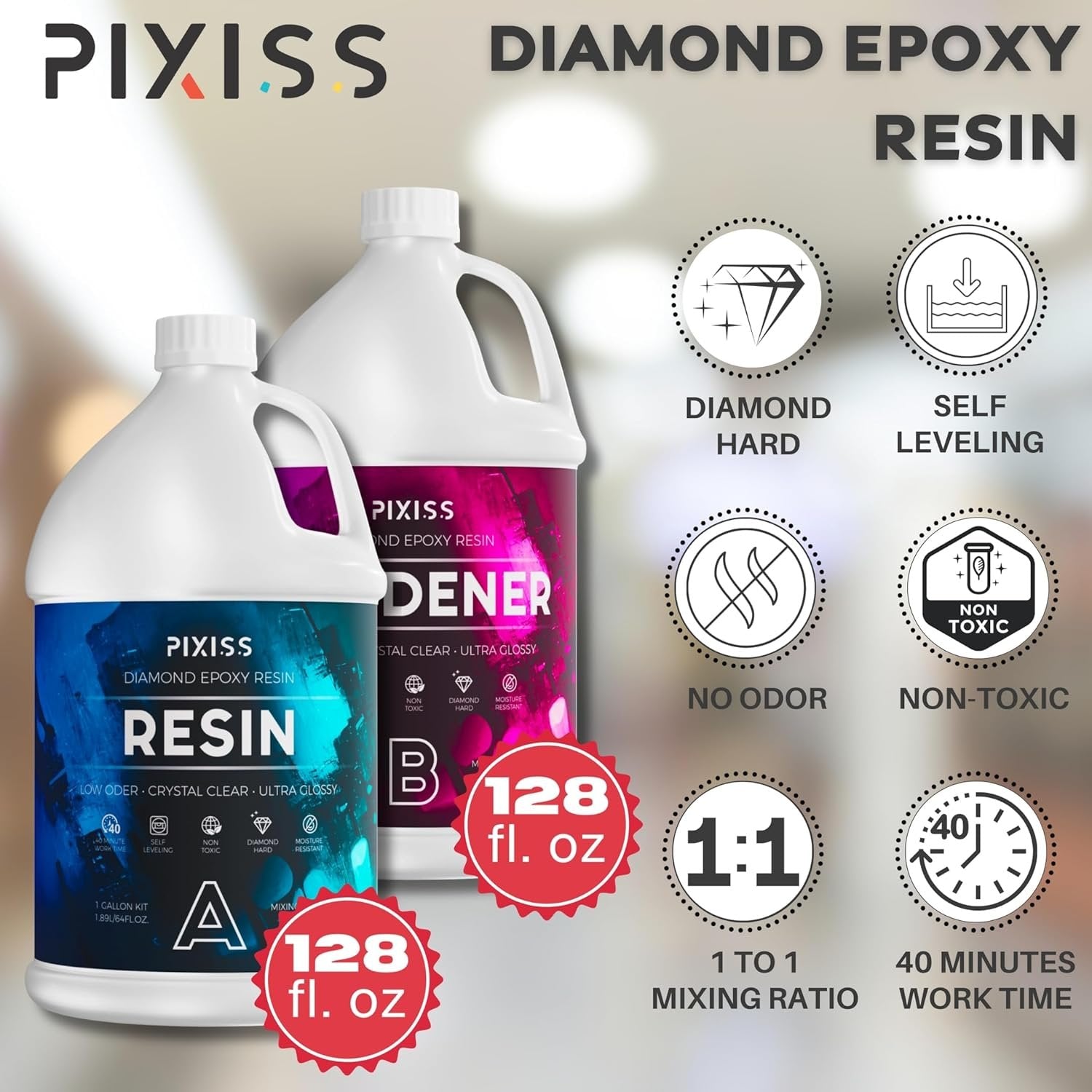 - Easy 1:1 Mix Ratio - Pixiss Crystal Clear Epoxy Resin for Crafts is beginner-friendly. Simply mix equal parts A and B of our 6 gal kit for glossy, durable finishes. 30-minute work time, 24-hour cure.