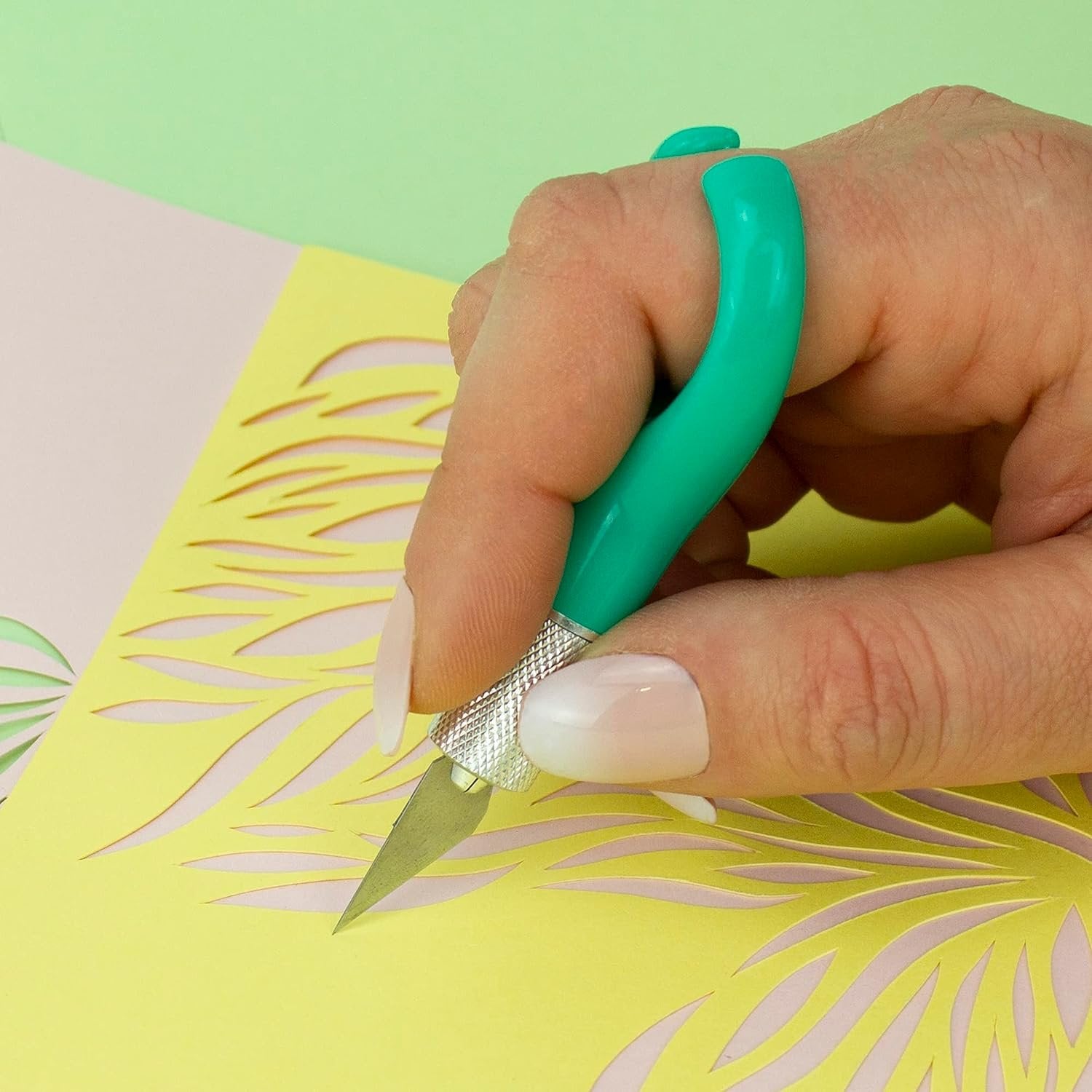 Excel Blades K71 Fingertip Craft Knife - 7 Inch Ergonomic Hobby Knife With Finger Loop - Crafting Supplies - Scrapbooking Knife and Cutting Tool For Precision Cutting and Trimming - Green Teal
