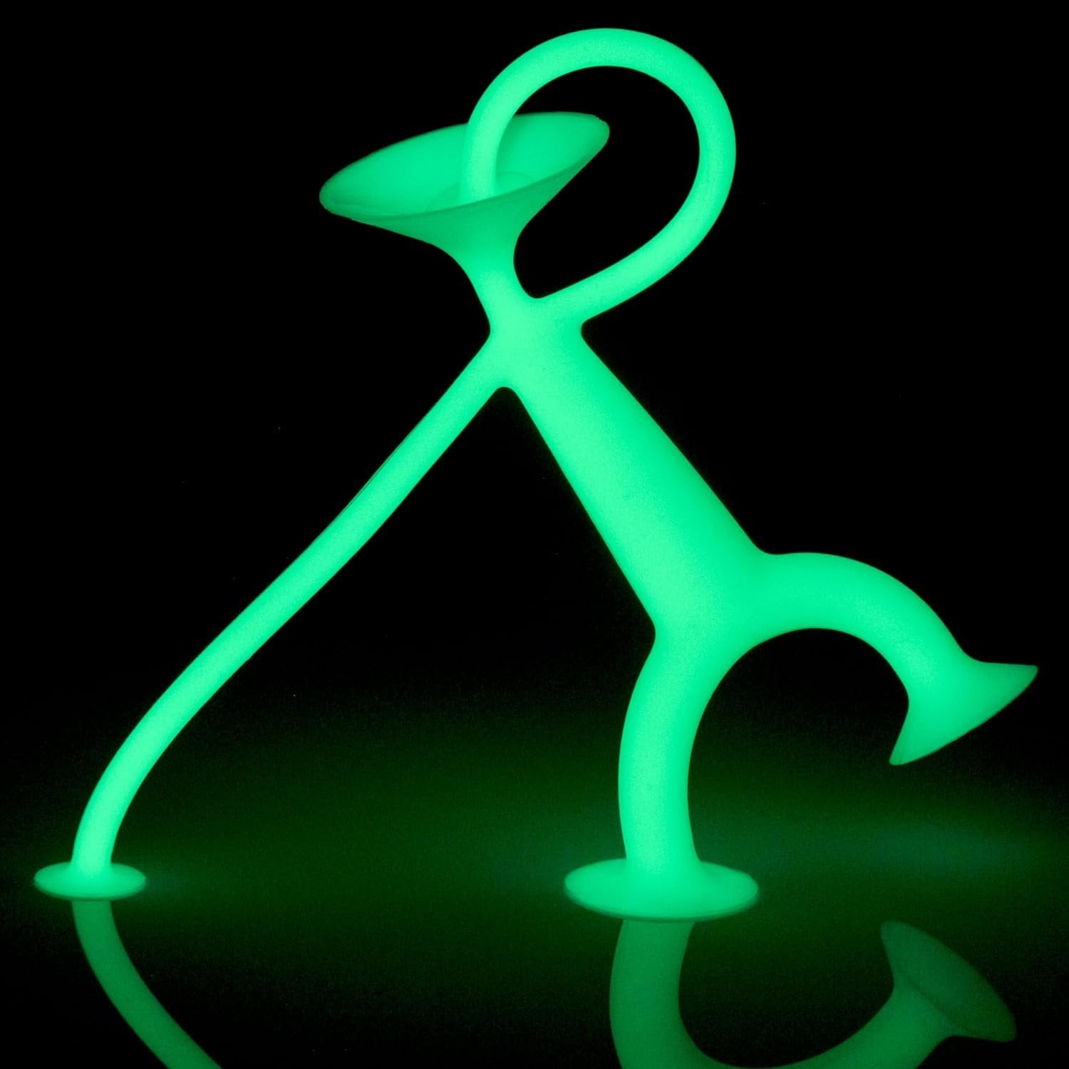 - Stretchy silicone play figure with suction cup limbs that glows in the dark
