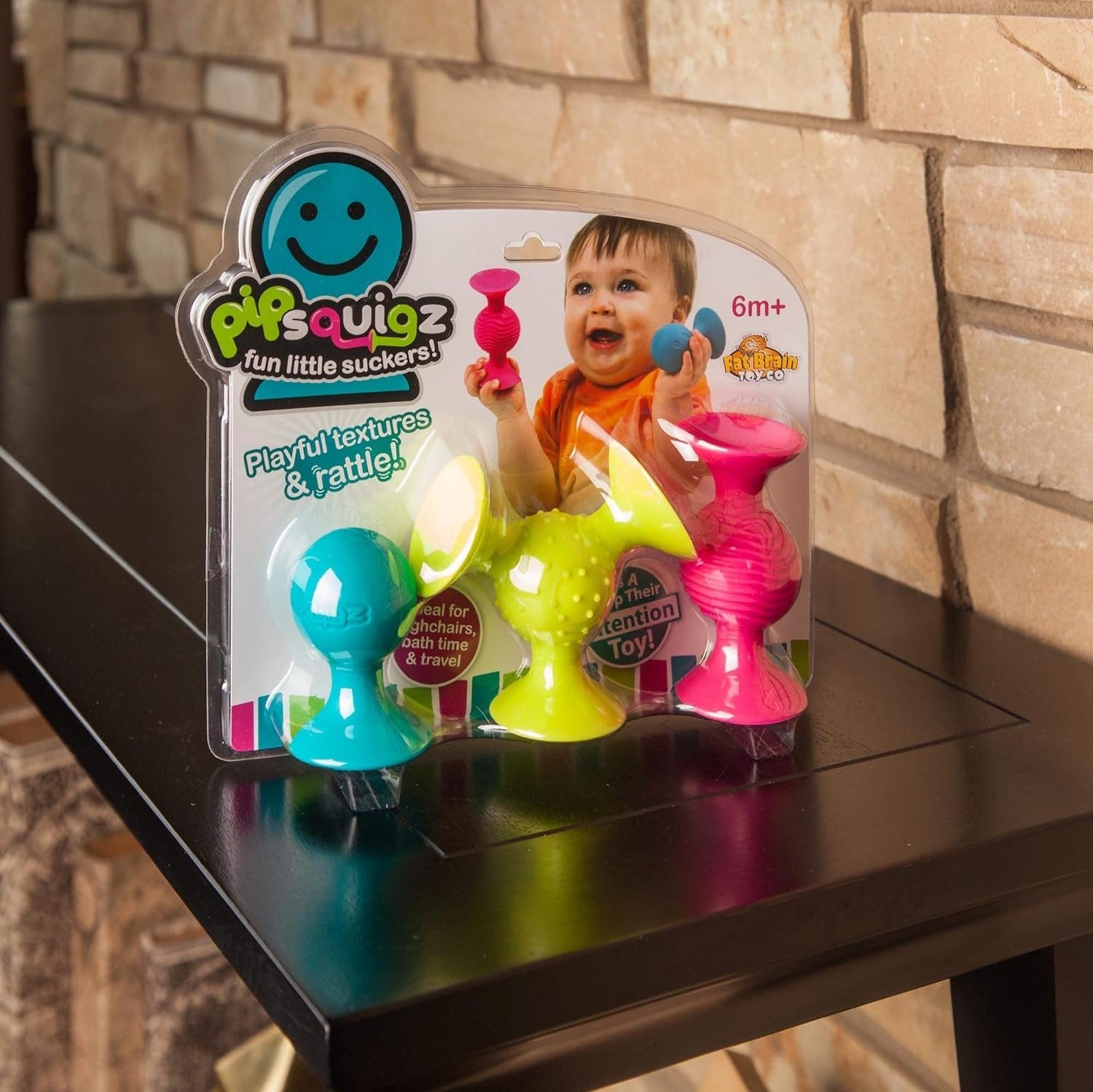 The ultimate keep-their-attention toy has arrived meet pips quigz, they're fun little suckers watch baby interact with playful colors, fun sounds, fresh tactile experiences and super suction.