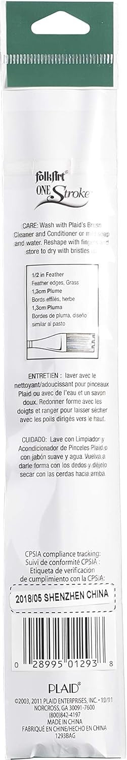 FolkArt Feather Acrylic 1293 One Stroke Paint Brush, 1/2", Multicolor