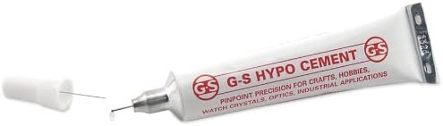 GS hypo cement tube contains 1/3 ounce. Strong precision application glue for highly detailed work, perfect for small jewelry pieces, models, and more. This glue is high-powered but will not bond fingers. There is a 1/3 ounce per piece. There is 1 piece per package.