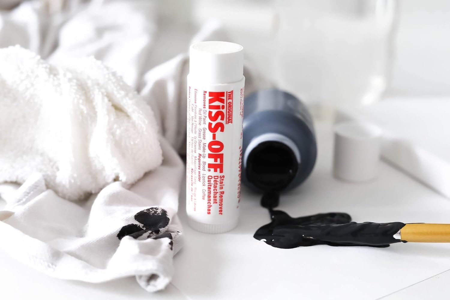 Kiss-Off Stain Remover removes stains on the spot. It is unique because it needs just water to remove tough stains, including grease, lipstick, blood, grass stains, wine, coffee and more! No harmful fumes, no liquid to spill, so it is safe to use at home, office, school, traveling, etc. Its convenient size makes it handy to take along anywhere a stain might find you.
