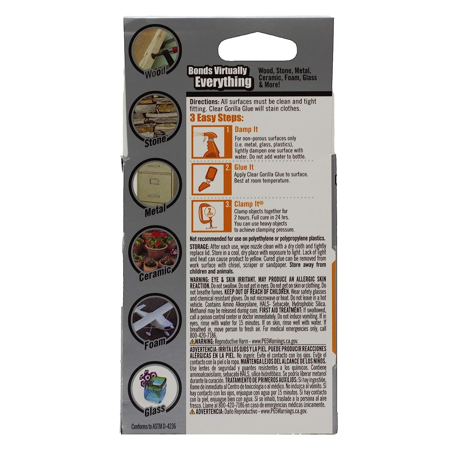 - Bonds virtually everything: wood, stone, metal, ceramic, foam, glass & more