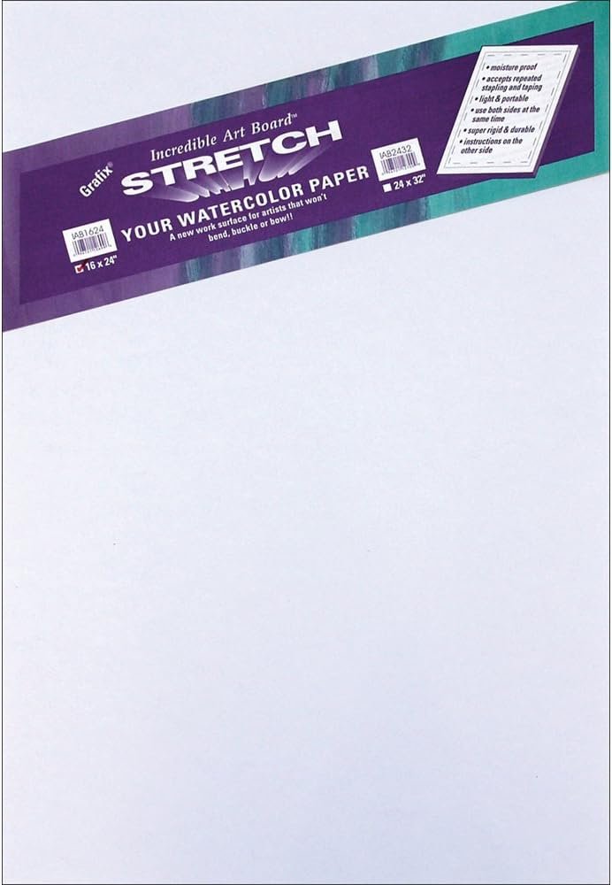 A revolutionary work surface for artists! The ideal board for stretching watercolor paper. Moisture proof foam center board won't bend, bow or buckle; solvent proof too. Durable, light weight and portable. Accepts repeated stapling and taping. 1/2 inch thick, both sides usable. 16 x 24 inches.