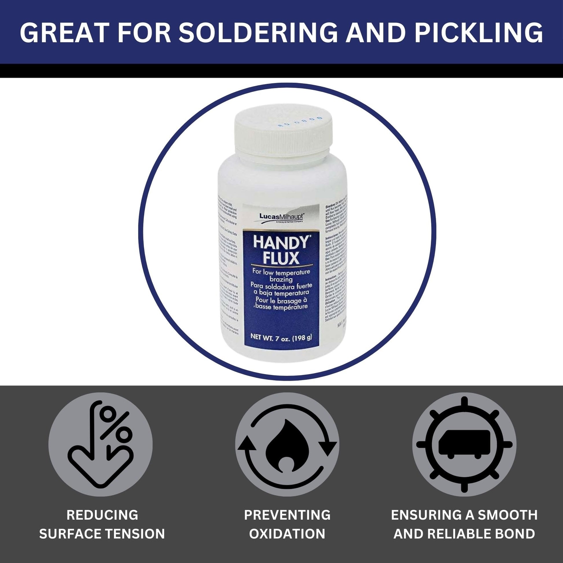 Handy Flux 7oz: Specially formulated for a clean, strong bond in all metalworking projects, Handy Flux ensures smooth solder flow, preventing oxidation and delivering professional results. Ideal for both beginners and experienced metalworkers, this flux is a reliable choice for various soldering tasks.