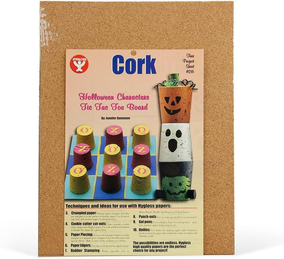 Hygloss Products Cork Sheets These cork sheets measure 8.5 x 11 inches and are 2 mm thick. They are easy to cut into any shape you need. The beauty of this handy cork is that not only is the quality second to none, but you can make as big or small a corkboard as you want. Fill up an entire wall at your house or classroom to hang things or use 1 sheet for a few pictures you want to display. They Make Great Furniture Pad Sliders You spend good money on your hardwood, laminate, or carpet floors. Cut small circles or squares out of the cork sheets and put them on the bottom of your furniture. You’ll be amazed how great they work at preserving your expensive floors. A Staple for Arts and Crafts Time Use this cork sheets for science projects, photo boards, coasters, door signs and even door mats! They also make outstanding drawer liners that will last a lifetime!
