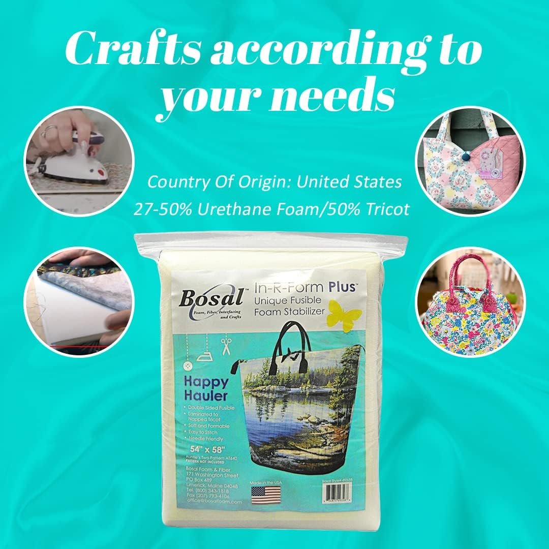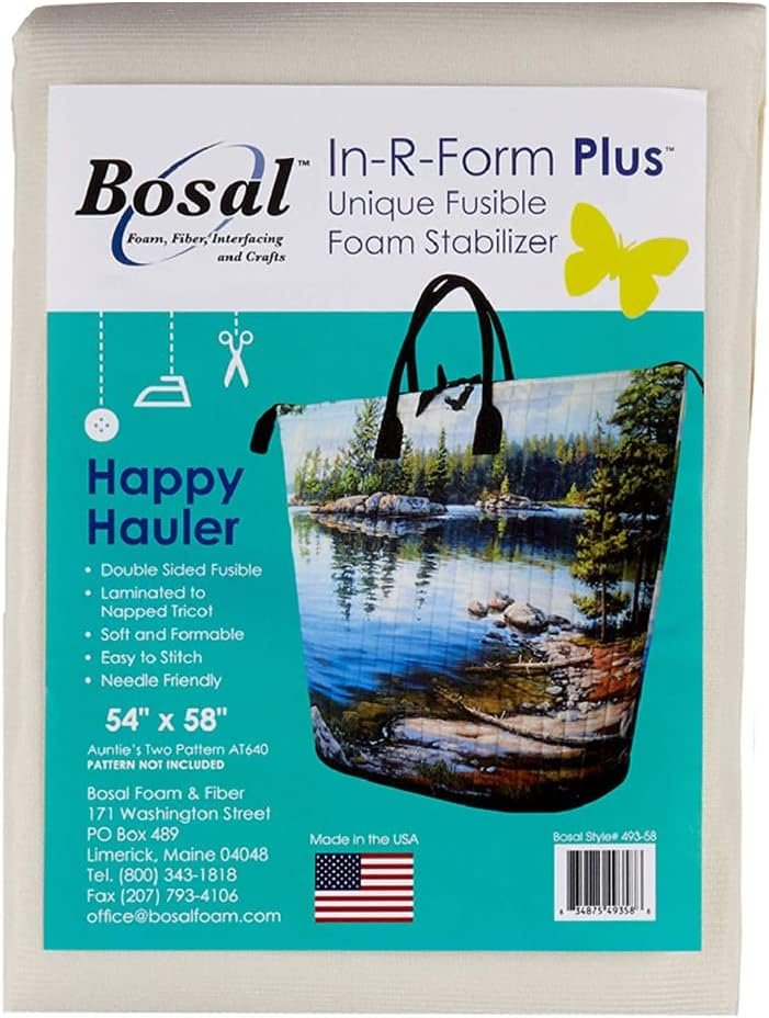 - This Bosal In-R-Form is 54'' x 58" inches of double-sided white foam stabilizer. This soft and formable stabilizer is laminated to napped tricot is easy to stitch and needle friendly.