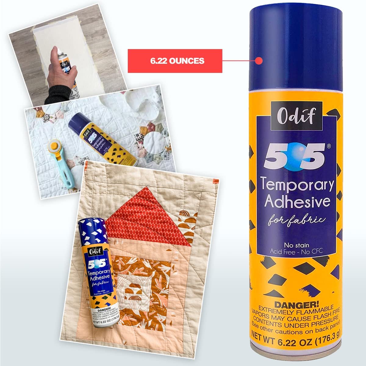 - Use Odif 505 spray baste for quilting, sewing, embroidery and more. Odif 505 is a temporary, repositionable, fabric spray adhesive used to temporarily bond fabrics.