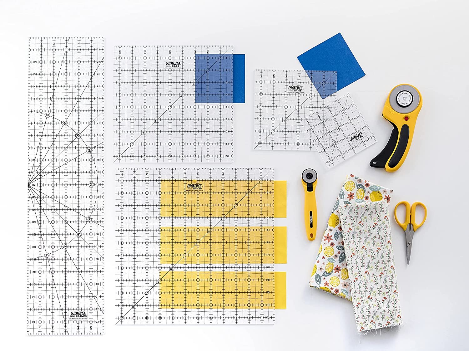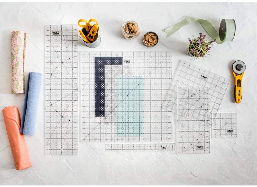 OLFA Frosted Advantage 16.5x16.5 Inch Acrylic Ruler is non-slip for stable and safe cutting. Frosted back with black grid lines for clarity on light- and dark-material. The large bold black numbers are easy to read. The ruler has black grid lines at every inch, dotted black lines mark the half-inch and black tick marks along the solid line mark the quarters and eights. The frosted back grips in place for safe, stable cutting but repositioning for small adjustments. Great for squaring larger pieced blocks and cutting larger pieces. Works well as a template for pillow tops and simple square patchwork designs. Also great for fashioning scrapbook and album pages. For right- and left-handed use. Hole for convenient hanging. Available in 8 sizes. This package contains one 16.5x16.5 ruler. QR-16S, 1071800. Imported.