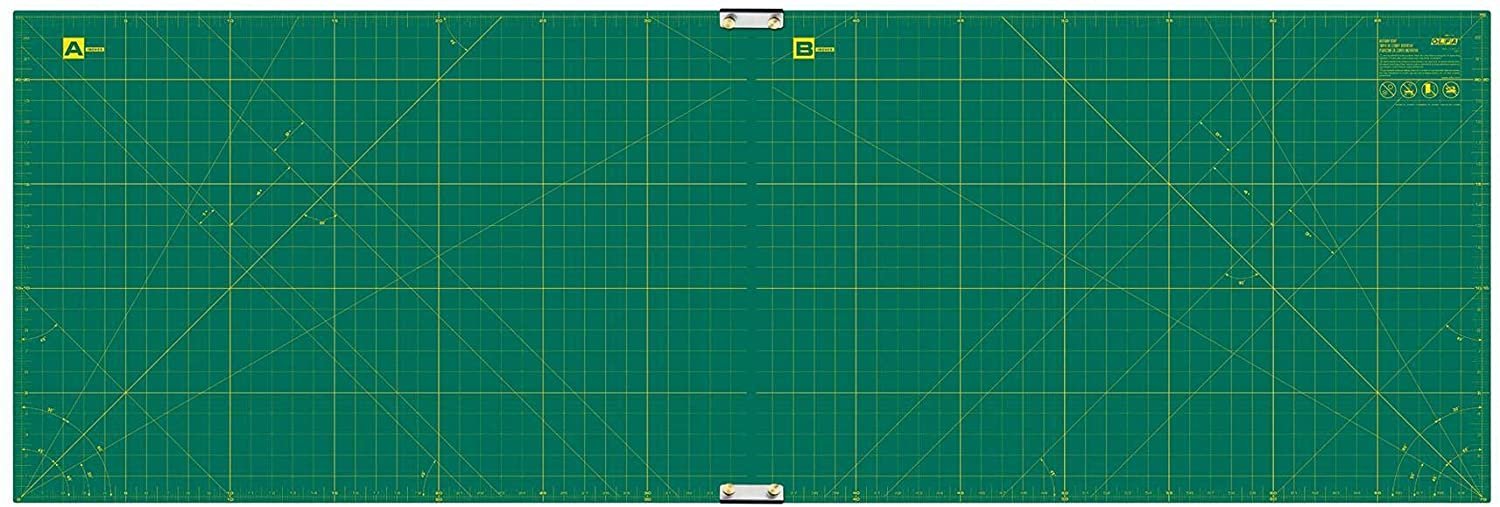 Olfa Cutting Mat 60cm x 180cm 2pkOLFA's large mat clip set is perfect for protecting a large area.The set is designed so that when put together, the mat grid lines run in a uniform number sequence.This 70"x 23" (1800mm x 600mm x1.6mm) clip set comes with two mats and two clips.Inch grid model.