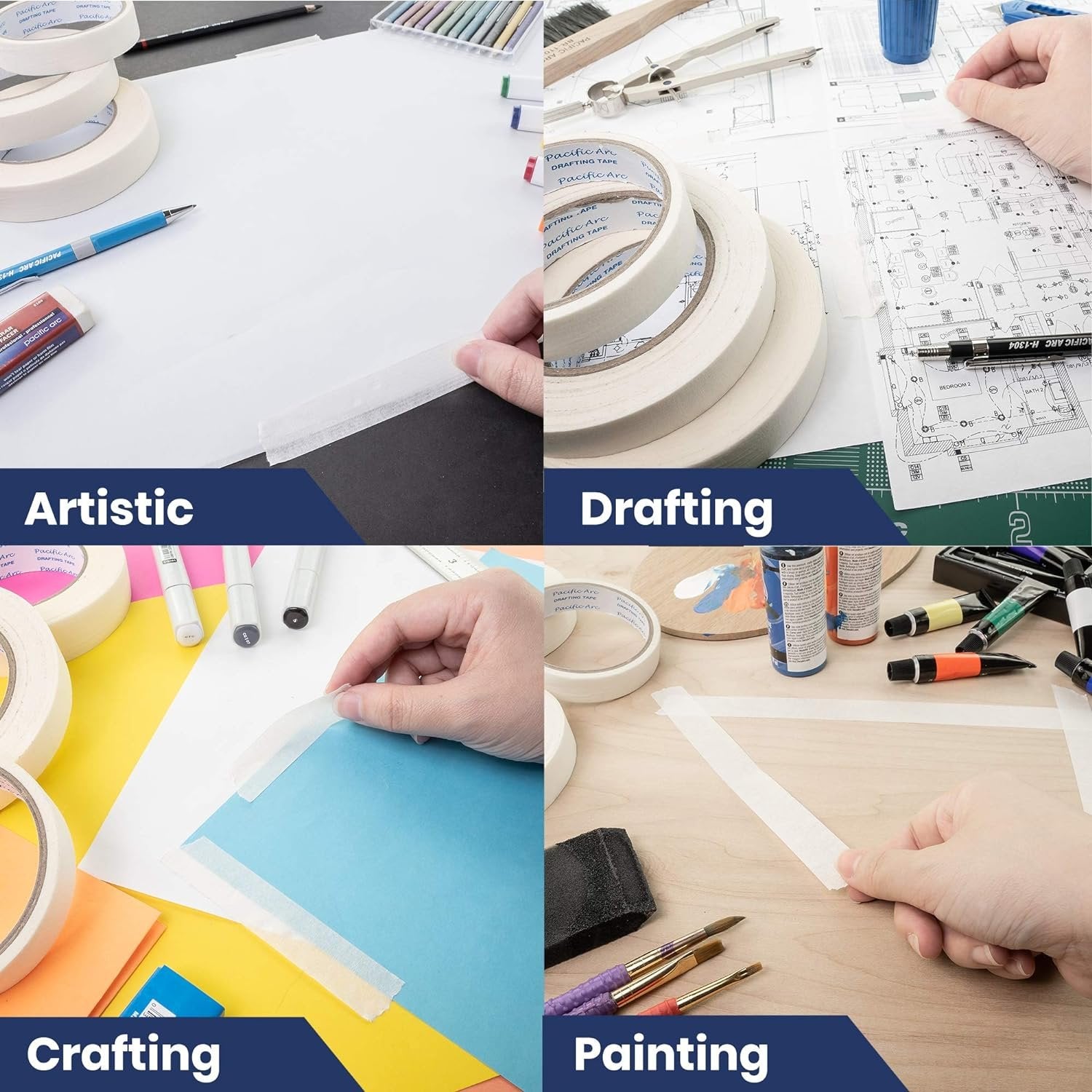 - VERSATILE - Use this masking roll tape as painters tape, artist tape, or hobby tape. The easy tear white painters tape is perfect for a variety of crafting, painting, drawing, stationary, and home use. It will stick to almost any surface including canvas, wood, and paper.
