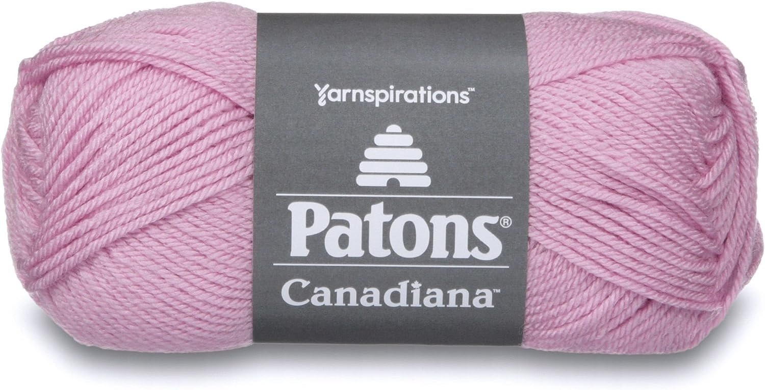 PATONS-Canadiana Yarn. Paton's largest and most comprehensive shade range which is perfect for both knit and crochet projects. This easy-care premium acrylic yarn is super soft and wonderful for every thing from children's items to home decor. Features: Weight category: 4 100% acrylic 3.5oz/100g. Gauge: 20st x 24r = 4in/10cm on size US7/4.5mm knitting needles. Recommended crochet hook size H8/5mm. Dyelotted: we try but are not always able to match dye lots. Care: machine wash tumble dry do not bleach do not dry clean do not iron. Imported.