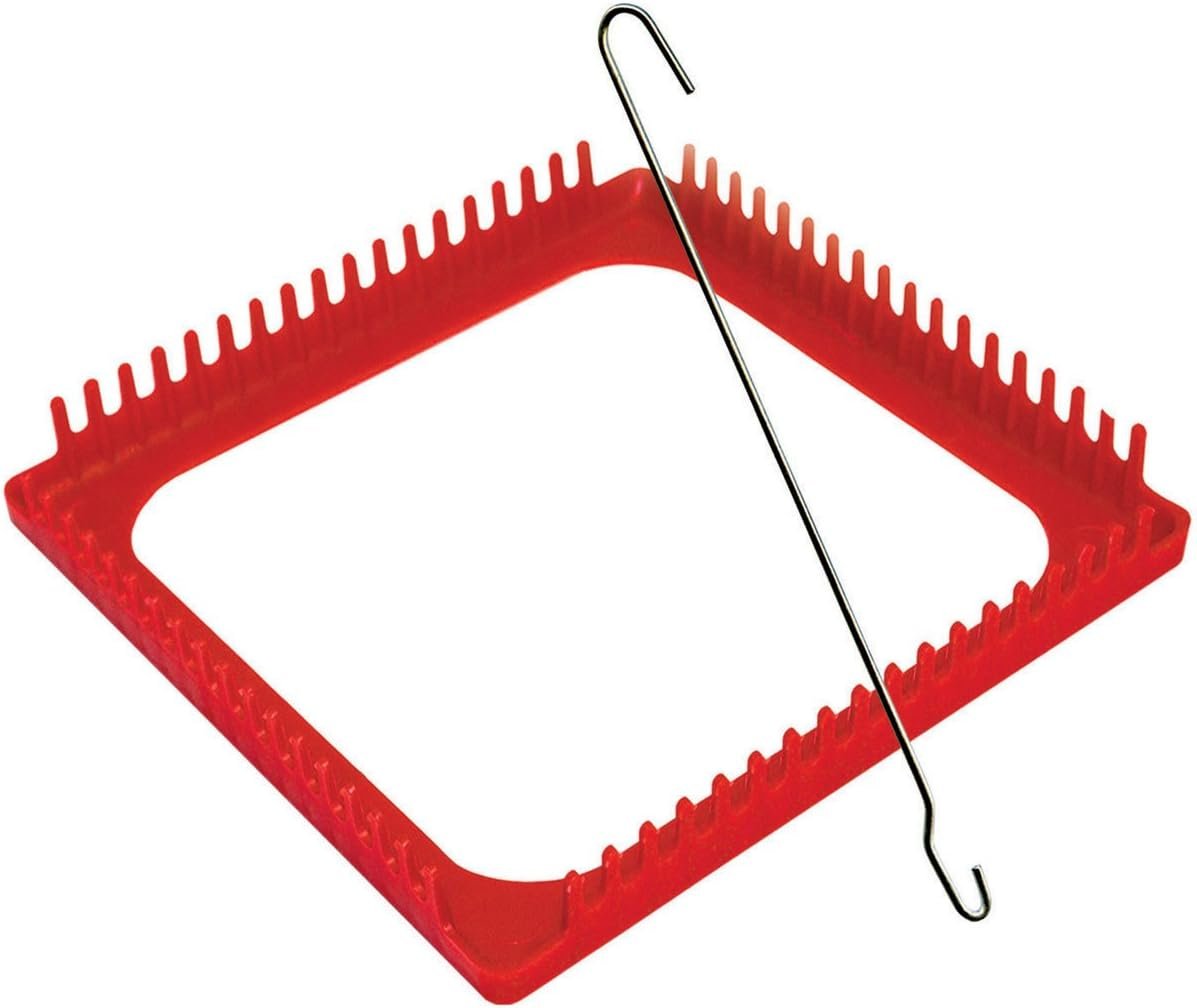 The Metal Loop Weaving Loom (square measuring 7-1/4 inches or 19 centimeters) is a fun, practical, and easy way to start the art of knitting. This Loop & Loom design is best suited for making pot holders, mats, and countless other craft or handmade jewelry items. Quality metal loom is conveniently washable and comes with metal hook/noodle (at 9-1/2 inches or 24 centimeters) and easy instructions for creating your very own potholder. Braiding Weaving Craft Loops sold separately; see Item 2002150. Safe for ages 5 and up.